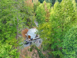 Spanning over 33' across and soaring 16' into the air, MOON DANCE offers unrivaled privacy. Enjoy the sound of the babbling 🏞 Dunn's Creek nearby.