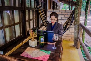 No pé da Serra, com muito verde e animais silvestres e a 4 km da praia de Itacoatiara. Silêncio e paz, ótimo para relaxar e curtir a natureza. A 5 minutos das praias mais lindas de Niterói. Uma experiência única que surpreende todos que conhecem. Chalé totalmente rústico, com decoração que remete as antigas casas do interior e nos traz as melhores lembranças de nossa infância.