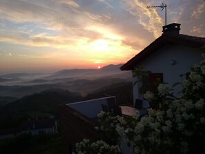 Detached, single-storey gite near the owners' house. Kitchen area (fridge-freezer, microwave), living room, lounge area (Wifi), 2 bedrooms (2 single beds. 1 double bed), shower room, wc. Aerothermal heating included. Possibility to rent sheets + towels. Cleaning product kit provided. Terrace, garden furniture, barbecue, courtyard. Balcony. Garage. Nice point of view. Lodging on a working farm, on the passage of the paths of St Jacques de Compostela, the GR10 and the GR65. Ideal for hiking. ST JAMES OF COMPOSTELA LABEL.
