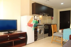 - Air-conditioned apartment with kitchen, washing machine and balcony