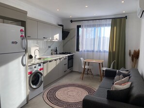 - Huoneistossa tarjoaa asiakkaille pyykinpesukoneen, jääkaapin ja lieden