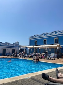 Perfect place for family three nights away with teenagers.We spent most of the days at the pool by the Casa Azul, lovely breeze, never busy, and handy snack bar for drinks and food right there. Its a little hilly so prob not the best for anyone with mobility issues. Ate breakfast both mornings at the Alfarroba restaurant. (Tip: ordering off the a la carte menu is better value than the buffet but that nay have been because we got the buffet one day as it seemed to be finishing up). Mini market on the site stocks anything you need. Kids played mini golf one evening. The resort is not really walking distance to anything in the heat…maybe had it been cooler and we were there longer, we would have attempted to walk to old town. Ubers were about 6-8 euro into the old town or the strip and were easy enough to get- no waiting. We booked a three bed apartment that was in great condition but had slight sign of wear and tear, mainly with the light in the bathroom not staying on and one plug socket that had come away from the wall. Apartment had everything you could possibly need (washer, ironing board, good kitchen with dishwasher). Bathrooms seemed pretty new and shower had great water pressure. It was advertised as having one bathroom but when we got there, there were two which was a pleasant surprise with 5 people! Tip 2: We ordered groceries and food via Uber eats since it was late when we got there. Overall I was delighted with our time here and the facilities- perfect for us!