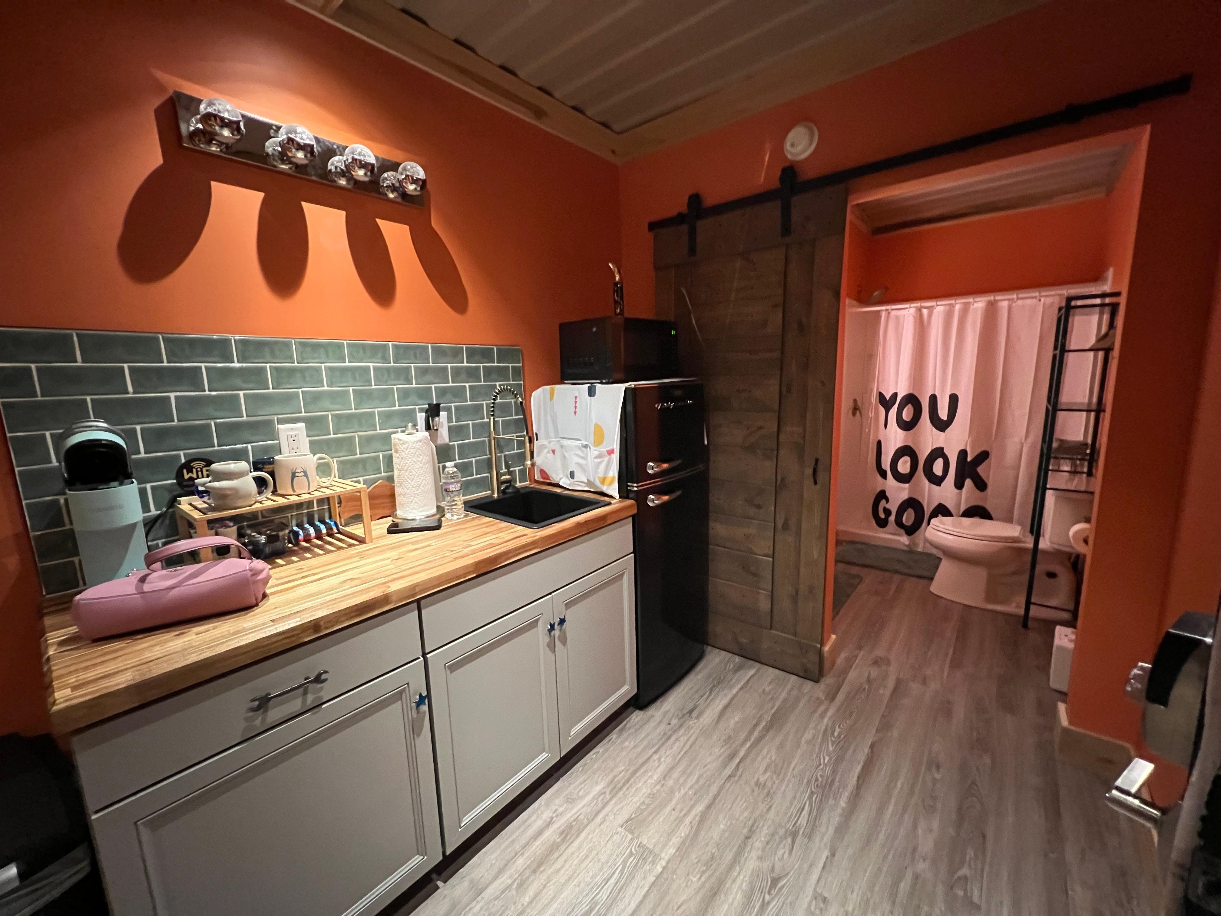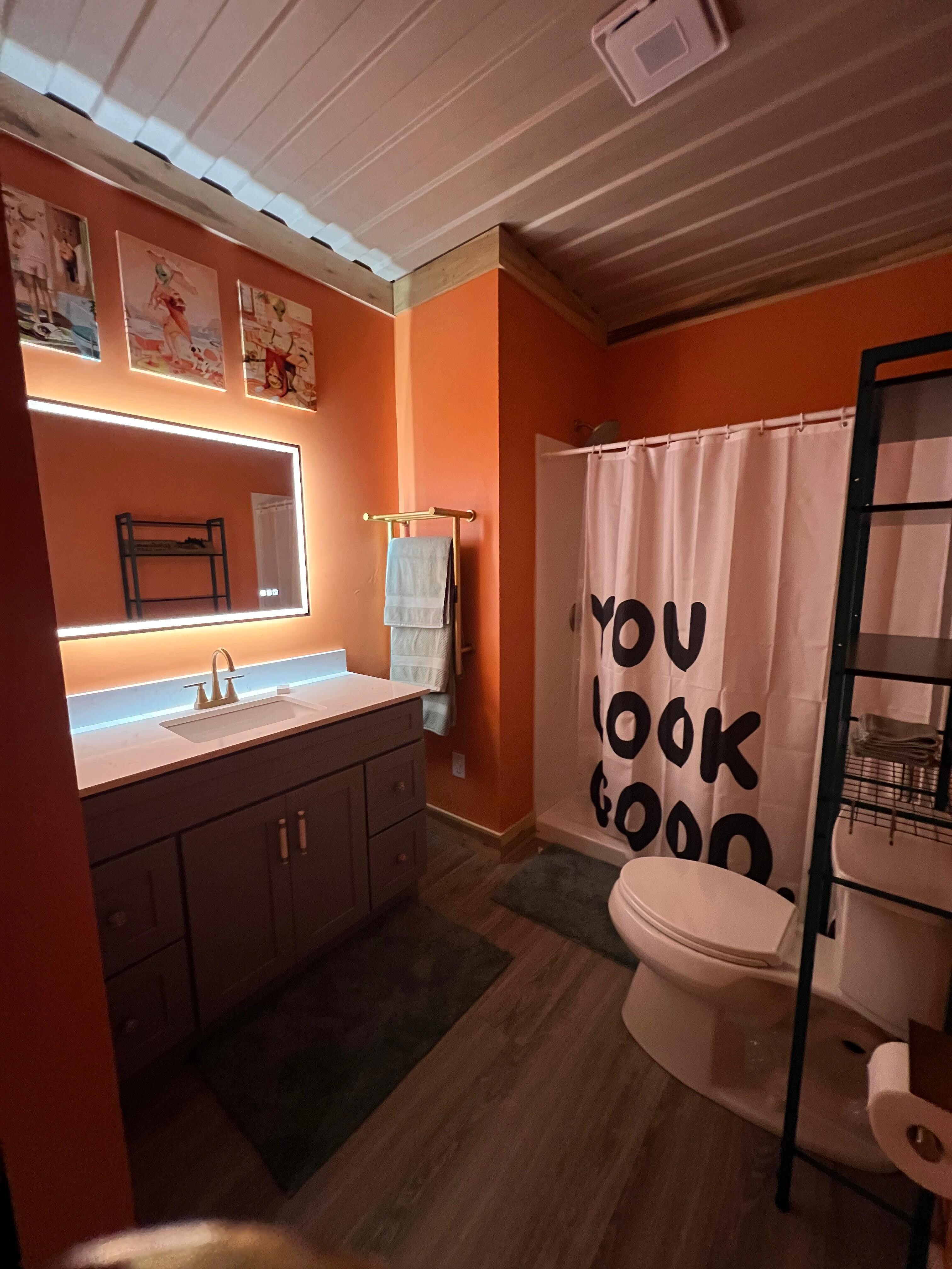 Cool off with AC, stay toasty with heat, and stream your favorite cosmic (or fishy) flicks with fast WiFi inside OR outside! The bathroom’s got everything you need, including a hot shower, towel warmer, Bluetooth mirror, and a hair dryer to get you ready for town—or just another day of casting lines and counting stars.