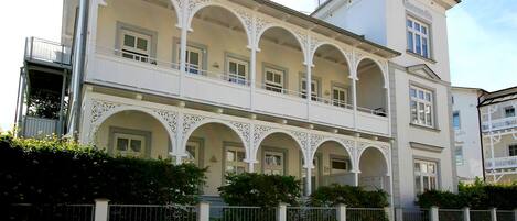 Hiljattain rakennetussa vuonna 1999 spa-tyylisessä valkoisessa huvilassa on 10 viihtyisää ja ystävällistä kalustettua huoneistoa 1-6 hengelle. Jokaisessa näistä huoneistoista (48 neliömetriä - 60 neliömetriä) on varastotila, kylpyhuone, jossa on lasisuihku, lattialämmitys, pyyhekuivain ja wc, olohuone verannalla ja pieni, viihtyisä oleskelutila, terassi, ulosvedettävä vuodesohva, jossa on nojatuolit ja sohvapöytä, väri-TV, suoravalintapuhelin, radio , Stereot ja sisäpuhelin, DVD-soitin, ruokapöytä, täysin varustettu keittiö, jossa on astianpesukone, mikroaaltouuni, jääkaappi, leivänpaahdin, kahvinkeitin. Olohuoneessa on Välimeren laatat. Huoneistossa on 1 tai 2 makuuhuonetta, joissa molemmissa on parivuode, säädettävät säleiköt, allergia-kestävät vuoteet (pestävä), vaatekaappi ja kokolattiamatto. Paikan päällä oleva pysäköintialue on saatavilla ilmaiseksi. Huoneistolle 13 rantatuoli, toukokuusta syyskuuhun, suoraan rannalle pääsyyn on käytettävissä ilman lisäkustannuksia. Huoneisto 1 - 9 osittain rannalla tuoli meren rannalla kuultuaan mahdollista ilmaiseksi. Sisäpihan puolella on pieni grillipaikka, jossa on teak-kalusteet, aurinkovarjot ja ranta-tuoli viihtyisille grillipaikoille.(Grilli ja tarvikkeet ovat maksuttomia) Tarjoamme mielellämme aamiaisen naapurihotellissa tai voit käyttää leipomopalvelua paikan päällä!Odotamme innolla sinua - tiimisi Villa Meernixessa Terveyspalvelumme paikan päällä sinulle: * Joka aamu tarjoillaan rapeaa aamupulloa ja aamupaperia * Retkien järjestäminen junalla, bussilla, linja-autolla tai veneellä * Kesäkuukausina kokkoja, hauskaa ja pelejä rannalla * Järjestelyssä kodikas grilli ja opastetut kierrokset * Polkupyörä ja Strandkorbverleih * Kaikenlaiset lelut ja rantalelut / kärryt * pesukone ja kuivausrumpu * pinnasänky ja syöttötuoli * grilli * siirto ja juna-asemalle * ostospalvelu * lukittava pyörähuone * osittainen hiustenkuivaaja * Erikoistarjoukset Ennen ja jälkeen kausi