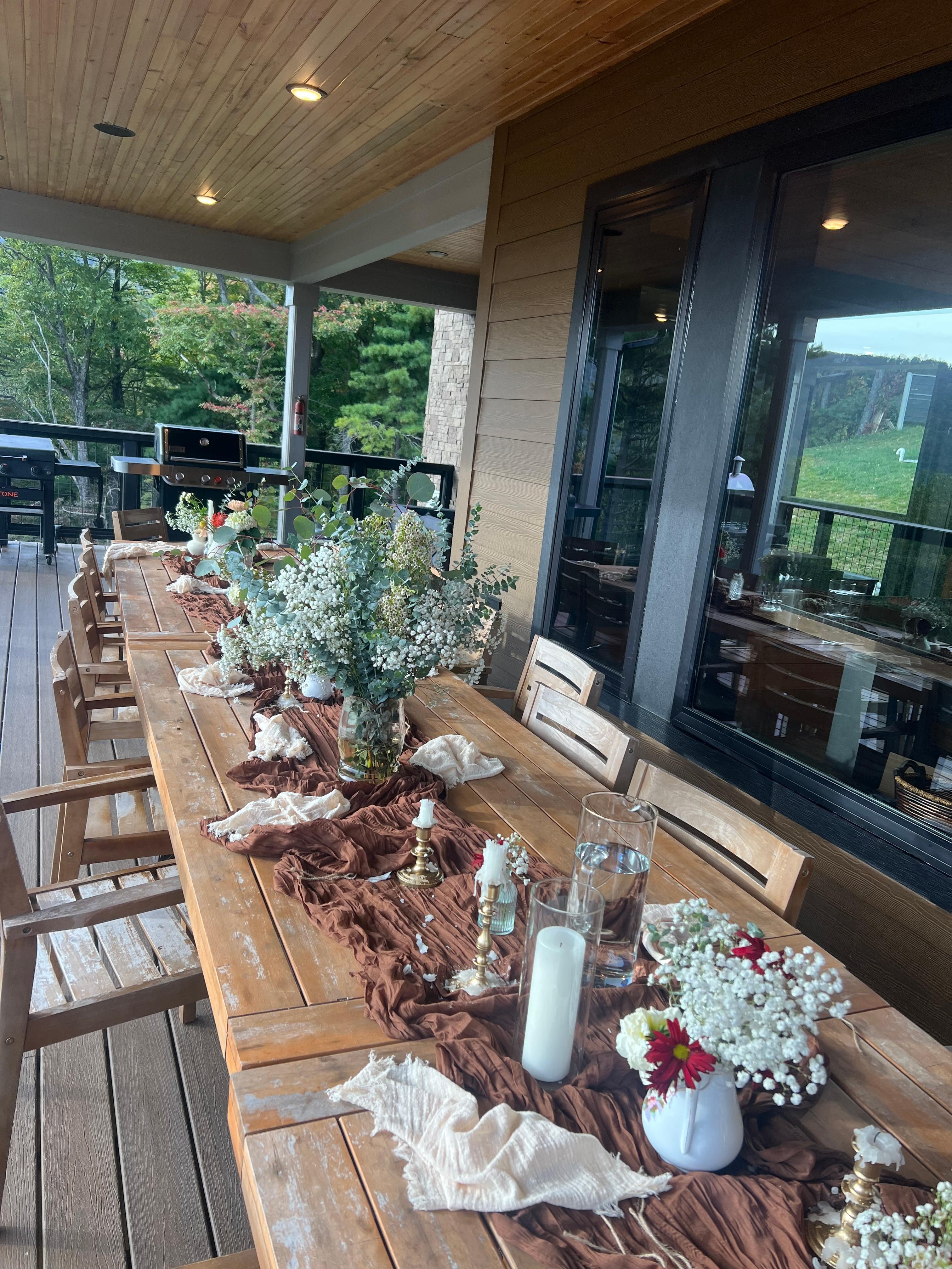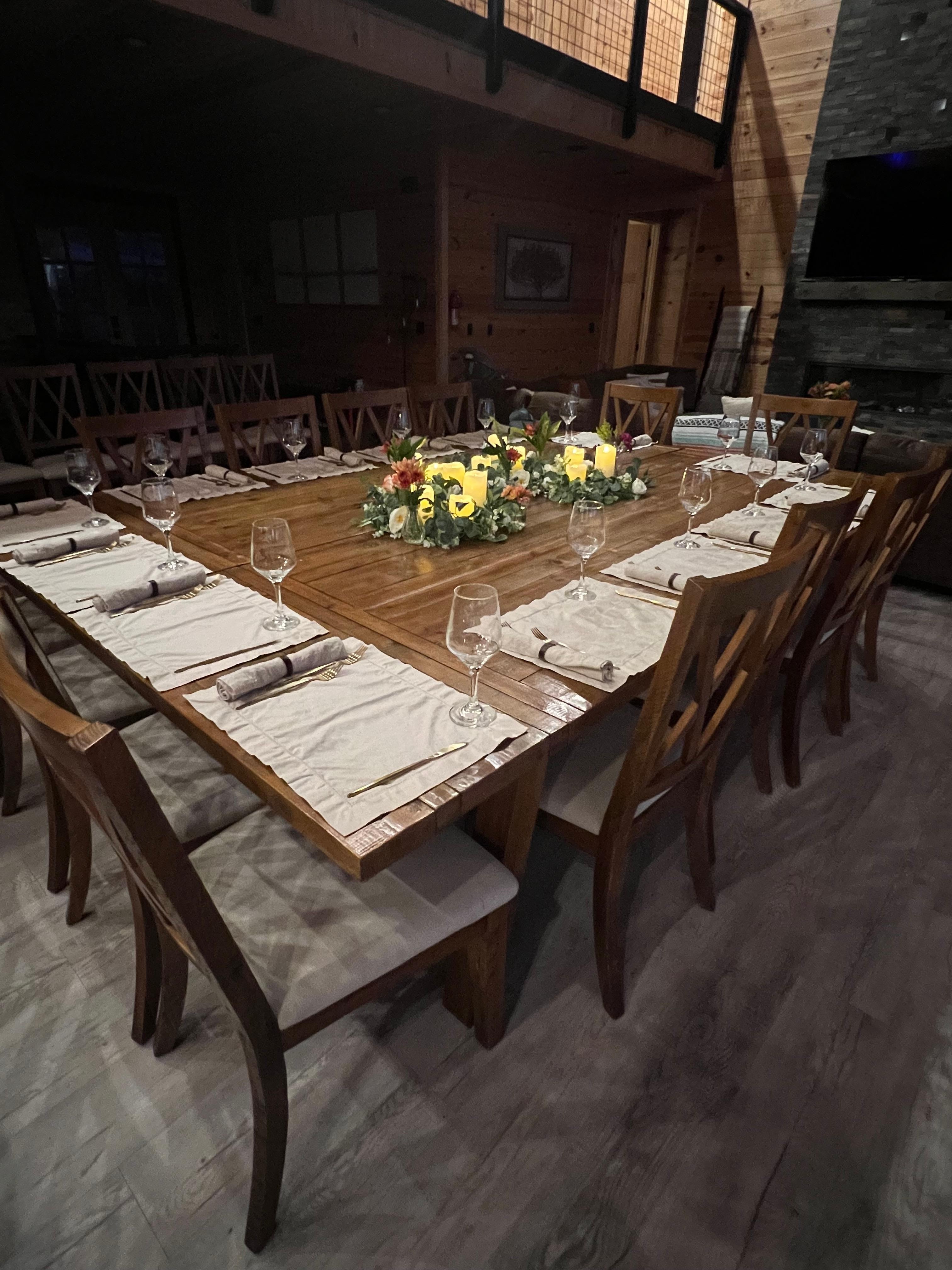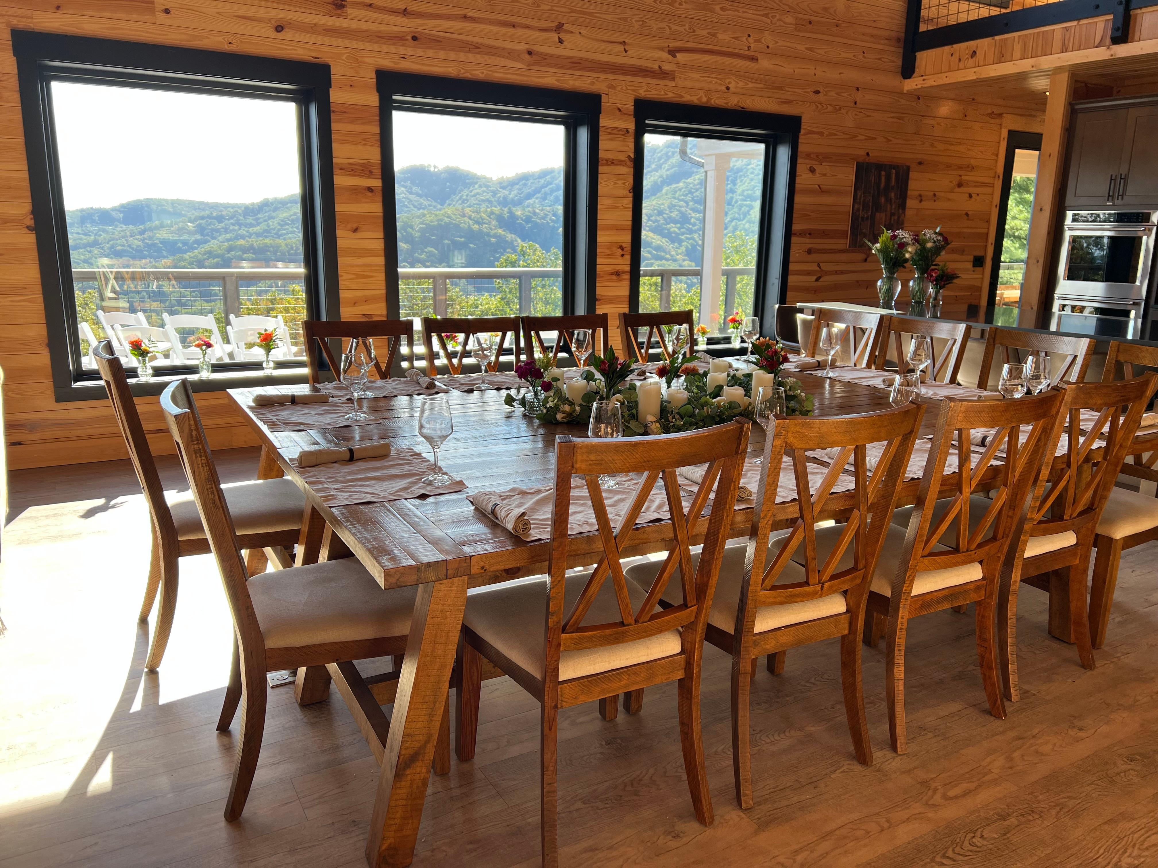 This property is spectacular. Amazing views, huge well-stocked kitchen, hot tub, sauna, steam room, movie theater, and all the games! Eight couples and a toddler stayed three nights for a family wedding. We found 14 white folding chairs in the front closet to set up on the deck for the ceremony, which began at 6:30pm just as the sun dipped below the treeline. It was gorgeous. Everyone had comfortable accommodations and so much to do right on the property as well as hiking and the charming town of Blowing Rock a short drive away.