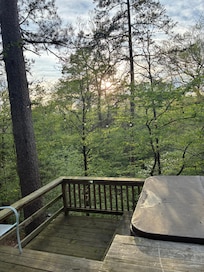We are two couples in our 50's/60's. Cute, quaint, little cabin. We would definitely stay again, but here are some takeaways: Loved the deck. The steps were a little steep for us older folks. Could add a middle step between levels. Hot tub was very relaxing. Some of the jet covers were missing but still functioned fine and felt great in the cool evenings. The view of the creek is pretty much non existent from the deck because of the beautiful trees. There is a clearing to walk down and a rope to hold onto to help guide, but it is very steep and we tried it only 1 time! Had to find a different way up. So don't expect easy access to the creek. The main reason we don't give it 5 stars is because one of the bathrooms has a significant hole in the floor. They just have the cracked tiles laying over it and tried to cover it with a rug. We expected that it would've been fixed by now since it has been mentioned in reviews since February, but it has not.