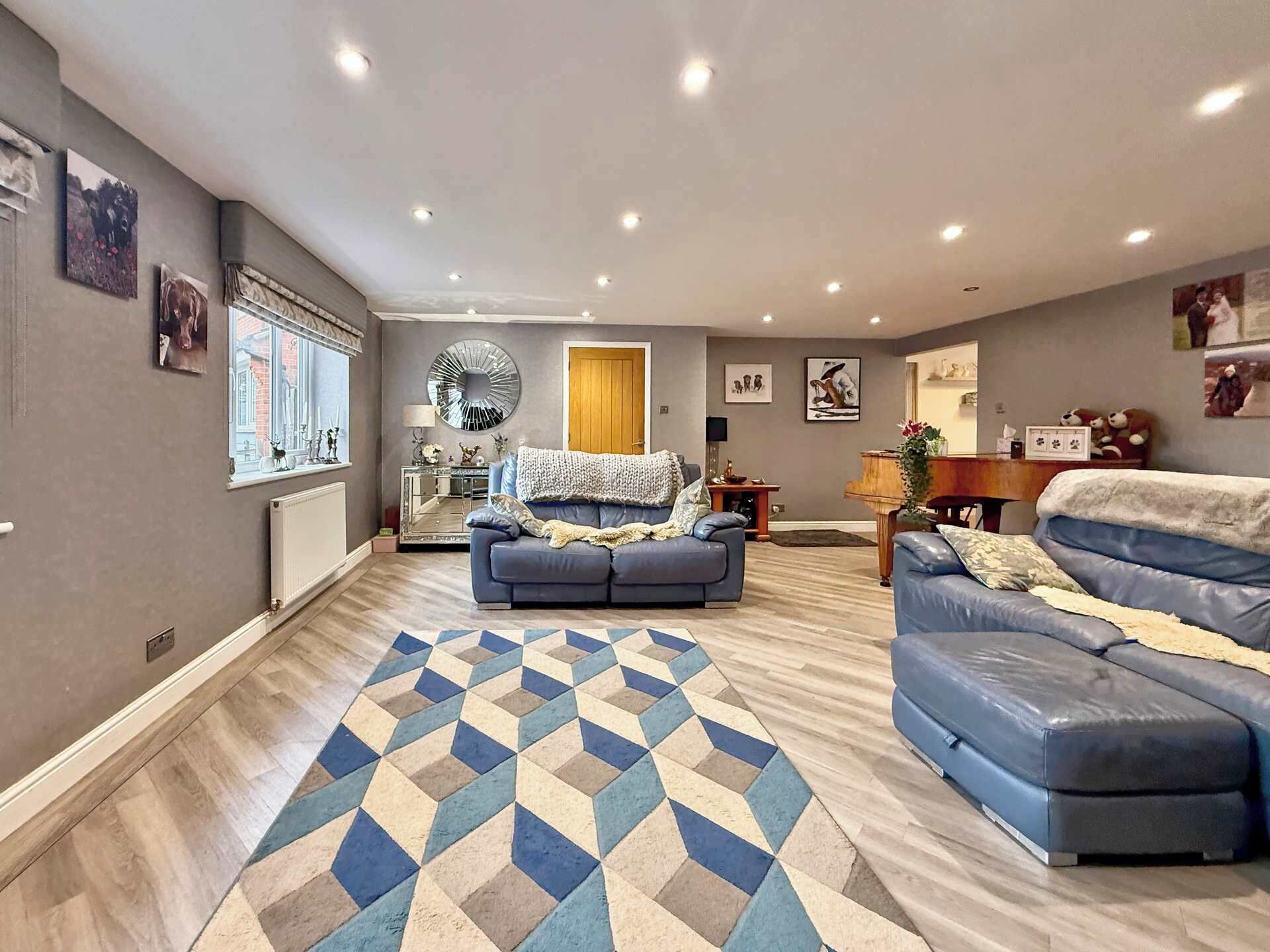 The annexe features high ceilings throughout, creating a wonderful feeling of airiness and spaciousness. Both the bedroom and family room come equipped with air conditioning, ensuring comfort year-round. The cosy yet practical open plan living and dining area is bathed in natural light from large windows, which offer delightful views of the garden and surrounding woods, where you might spot foxes, pheasants, and birds of prey such as hawks soaring above.