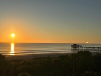 The view was wonderful. Condo layout was nice and loved that there were beach chairs, towels, and boogie board in the condo to use. Condo appeared clean but the door was left open when we arrived which was a little unnerving and there were a pair of underwear left behind one of the bedroom doors. My son got sick and when cleaning up the mess it was concerning how dirty the floor was. My biggest issue was sleeping as the thermostat would not go below 74 despite what it was set at. We like it cool when we sleep and woke up sweating. Finally resorted to leaving the door open at night to cool it off. Overall we enjoyed our stay and the beach access, just wish we had a little more control over the thermostat. The grocery store and pier were both an easy walk away