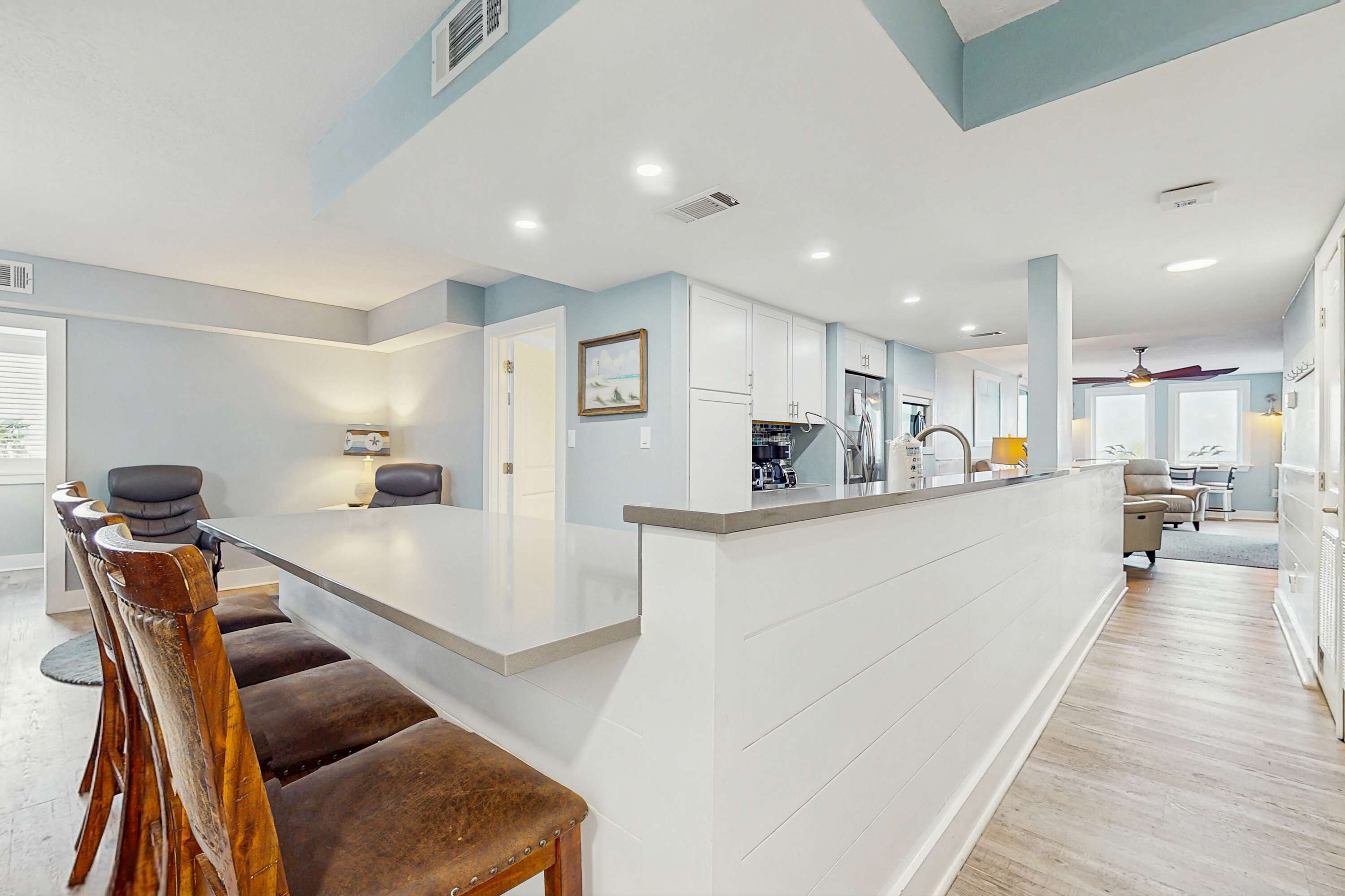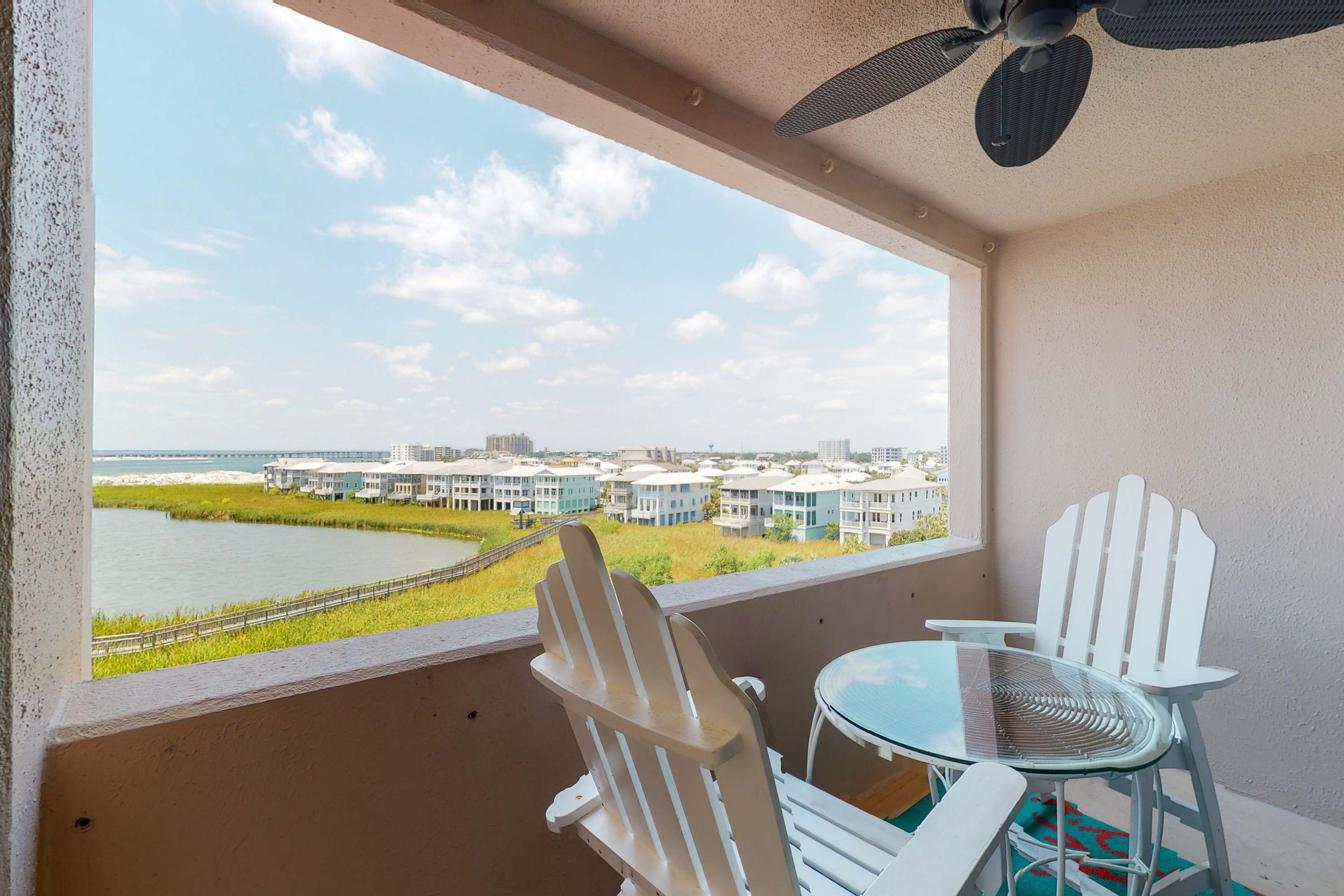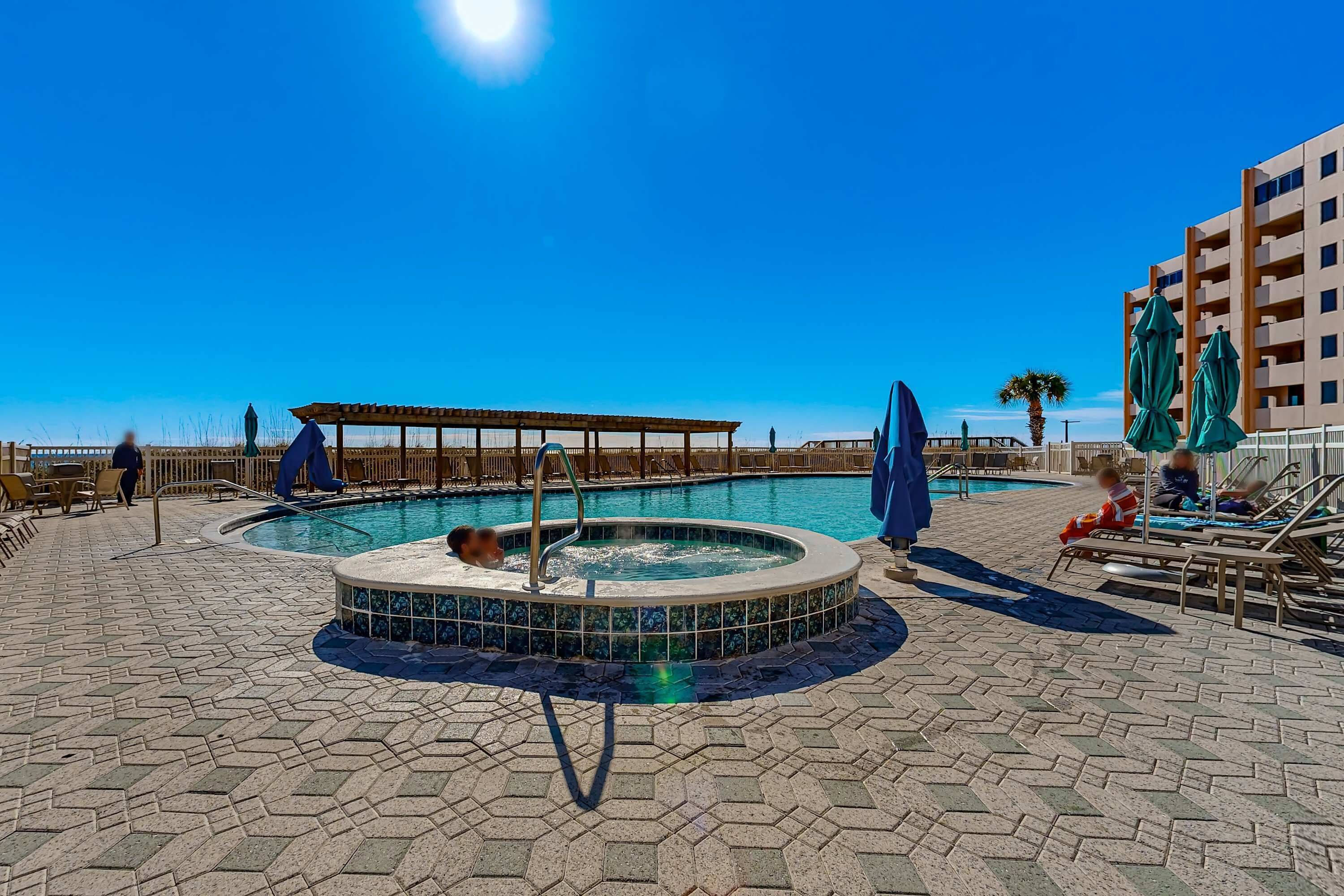 King Size Bed in Bedroom, Sleeper Sofa. The Large Glass Doors in the Living Area go out to the Open Balcony where you can relax and enjoy your gorgeous view of the beach and gulf as well as the pool. The Bathroom has a Comfort Height Toilet and a Grab Bar in the combination tub/shower. Watch the 44" HD/LCD TV and DVD Player in the Living Area and the 32" HD/LCD TV and DVD Player in the Bedroom. This recently updated unit features 6 panel doors, 18" tile floor and granite counter tops in the kitchen and bath.