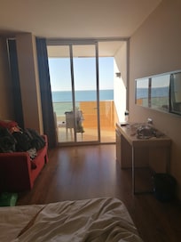 Kahden hengen huone yhdelle, 2 keskisuurta parisänkyä, parveke