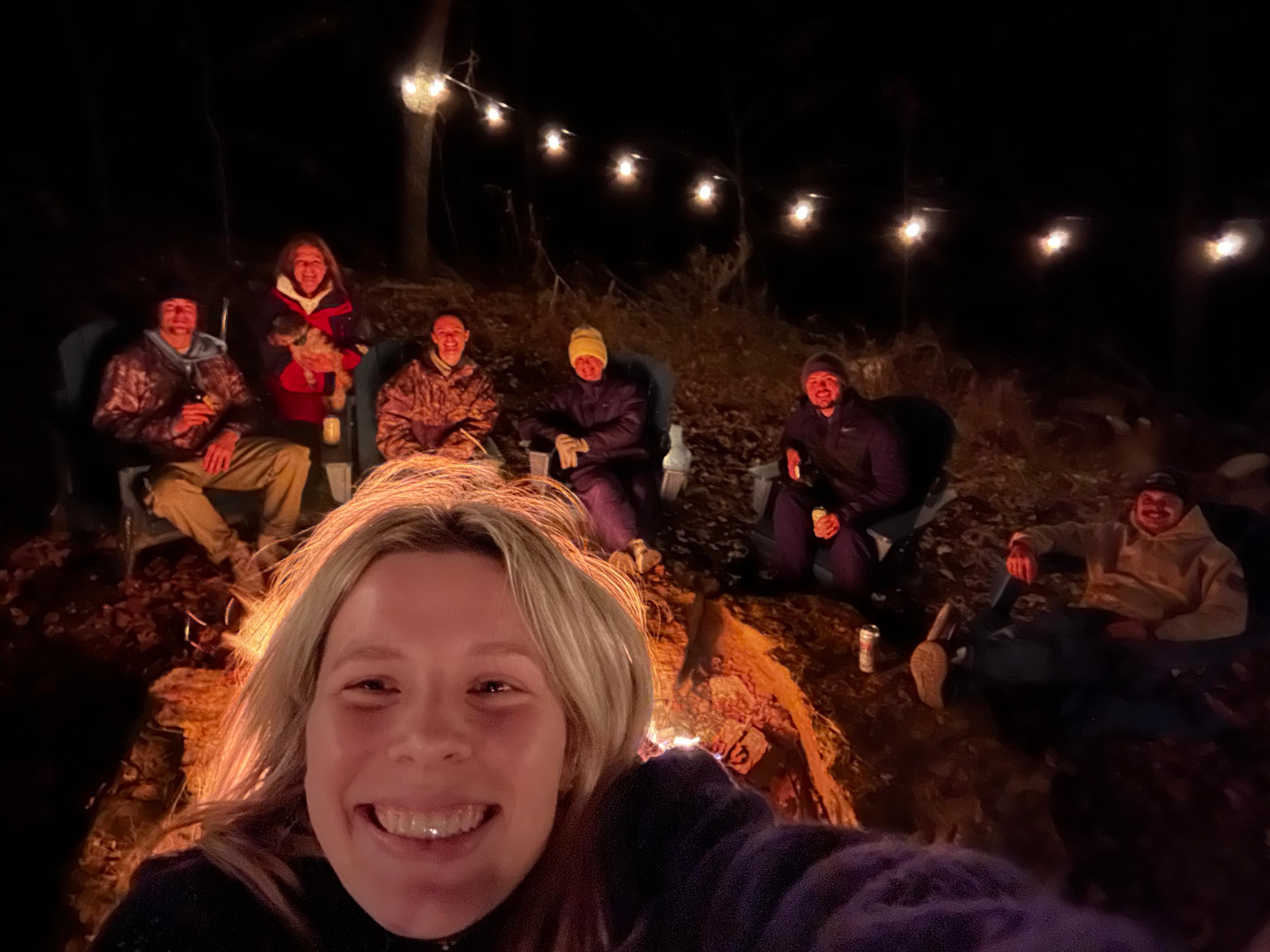 A charcoal grill and firepit zone for cookouts and s’mores