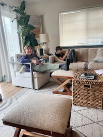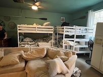 We loved this place! It is spacious and beautifully decorated with seashore decor throughout.The living space was very comfortable and pleasant for conversation and game playing. There was plenty of space for three couples to have their own attractive bedrooms. Our 4 grandchildren 10 - 16 years loved hanging out in the large garage room which had fullsize bunk beds for each with steps leading to the top, a large cushy couch, big wall tv, air hockey, and foosball. The kitchen is fully equipped with all the dishes, food prep and cookware needed for creating great meals. I asked ahead of time about cake pans and received a quick response and suggestion to bring any specialty cake pans we might need. We were glad we did. The dog was happy to have a nice penned area. The views across Holmes Harbor of water and mountains were very good. Sunrise was beautiful! Freeland had stores for all or needs and great restaurant choices. It is close to many interesting attractions - Mutiny Bay beach, Langley, Meerkirk Gardens, Greenbank Farm to mention a few. It was a perfect in every way for our extended family gathering. Thank you Scott and Heather for your welcoming, for quick responses, for adjusting the checkin/ checkout times, and providing this wonderful place!