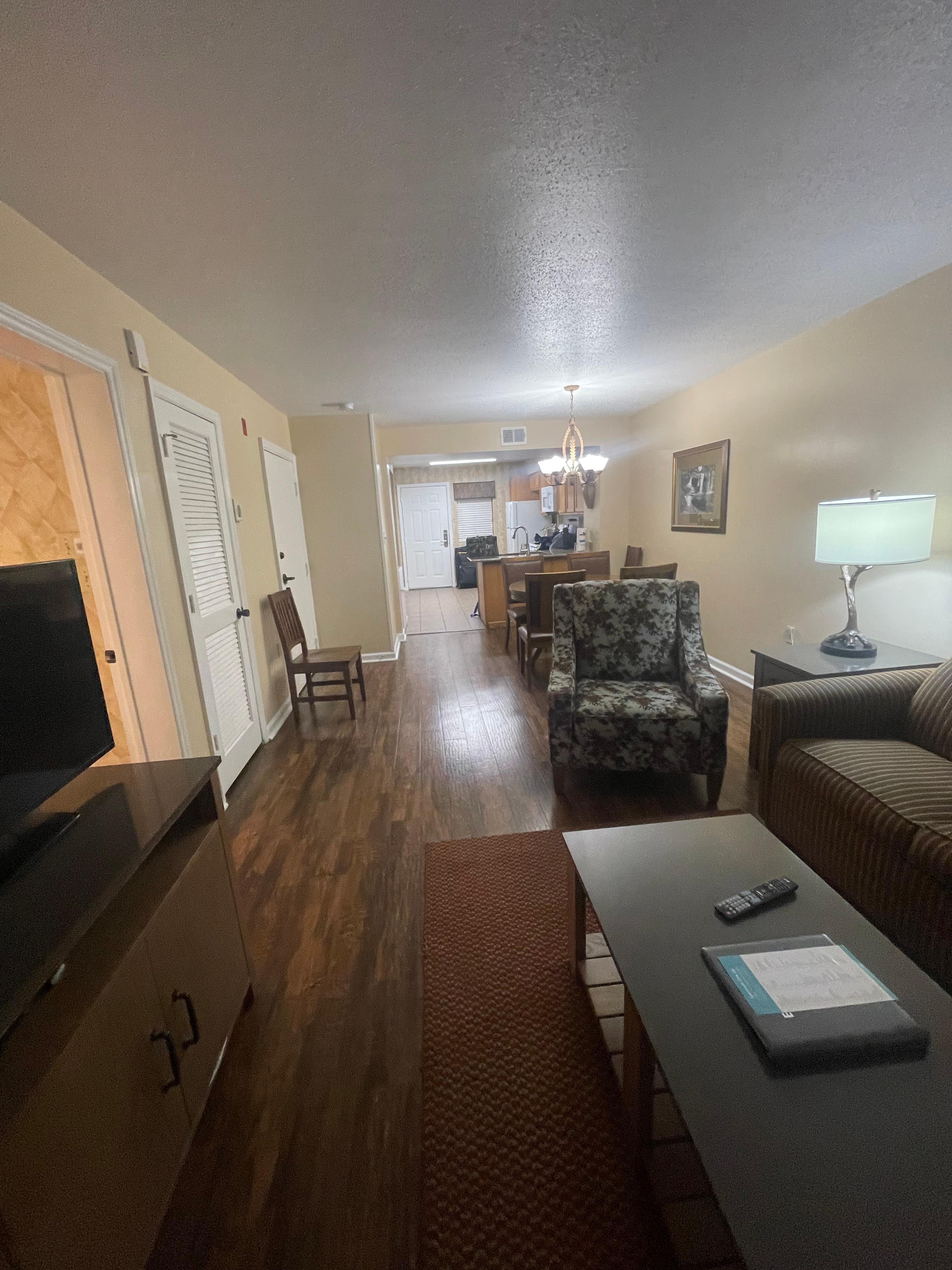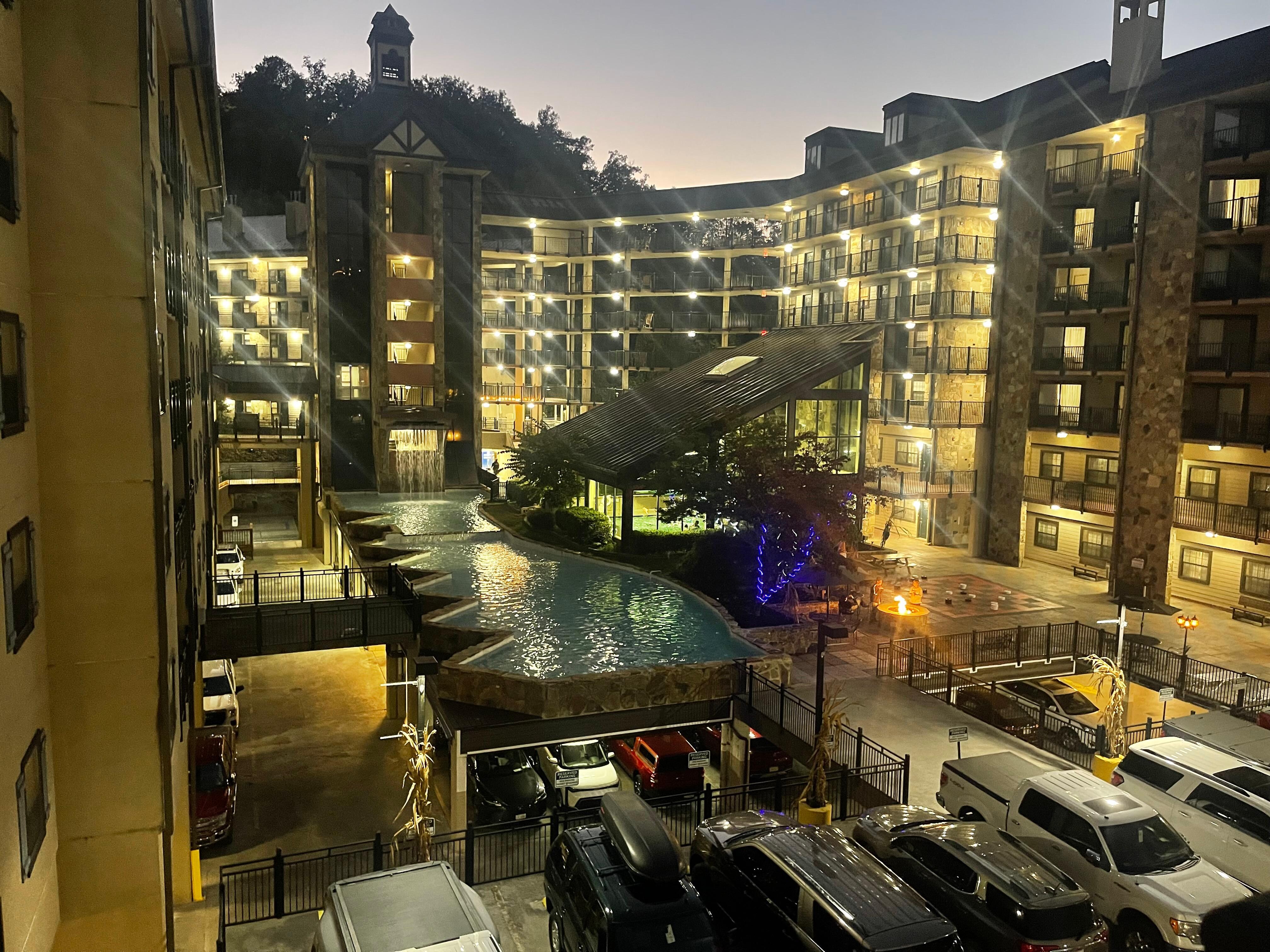 We had the great pleasure of staying at Gatlinburg Town Square for our first trip ever to beautiful Gatlinburg, Tennessee. Our accommodations were excellent and they resembled a condo type setting fully equipped with a kitchen, dining area with a table for 6, a living room with a beautiful gas fireplace, a bedroom with a king sized bed and a jacuzzi for two with jets, a stackable washer/dryer, a balcony with a table and 4 chairs. Along with all these things mentioned, there was everything you need for the kitchen, bathroom and laundry. The bed was exceptionally comfortable and I can’t say enough about how clean and comfortable the accommodations were. The bed linens and towels were crisp, white, spotless and comfortable. There was a beautiful indoor pool which we didn’t have time to go in but it was very nice. The location of the resort was perfect because it was in walking distance to Parkway which is the main street for activities, restaurants, clubs, shows, attractions, etc. There was a free trolly pick up and drop off right outside of our building. The free parking was enclosed, spotless and safe with an elevator leading up to the various floors perfect for those with wheelchairs, strollers or those who have trouble with stairs. As we stated before, this was our first time to Gatlinburg and we were so amazed at the fabulously fun time and the breathtaking views everywhere we went. While there, we ventured up to the Skybridge which is a must. Can’t wait to return!!! Enjoy!
