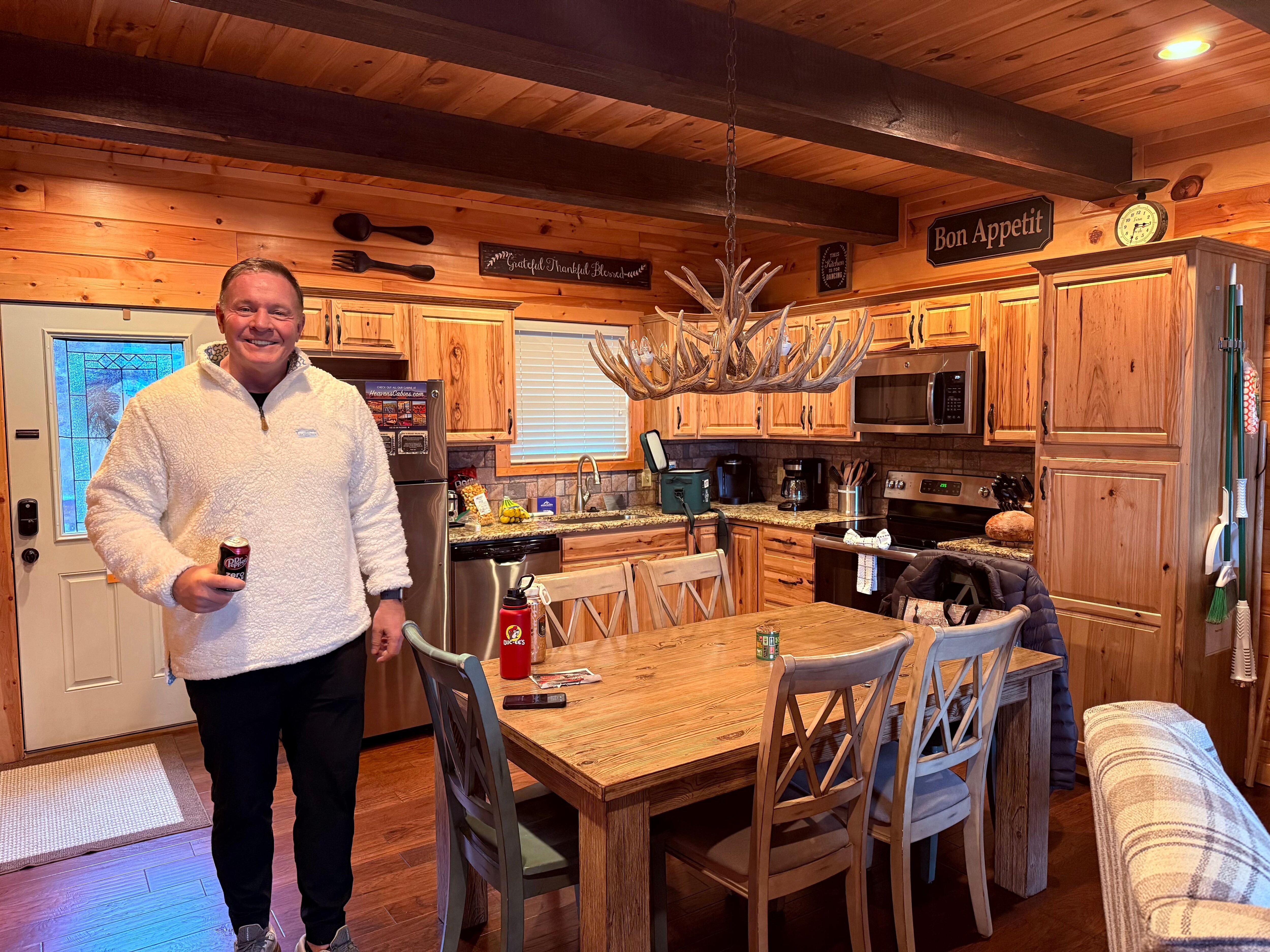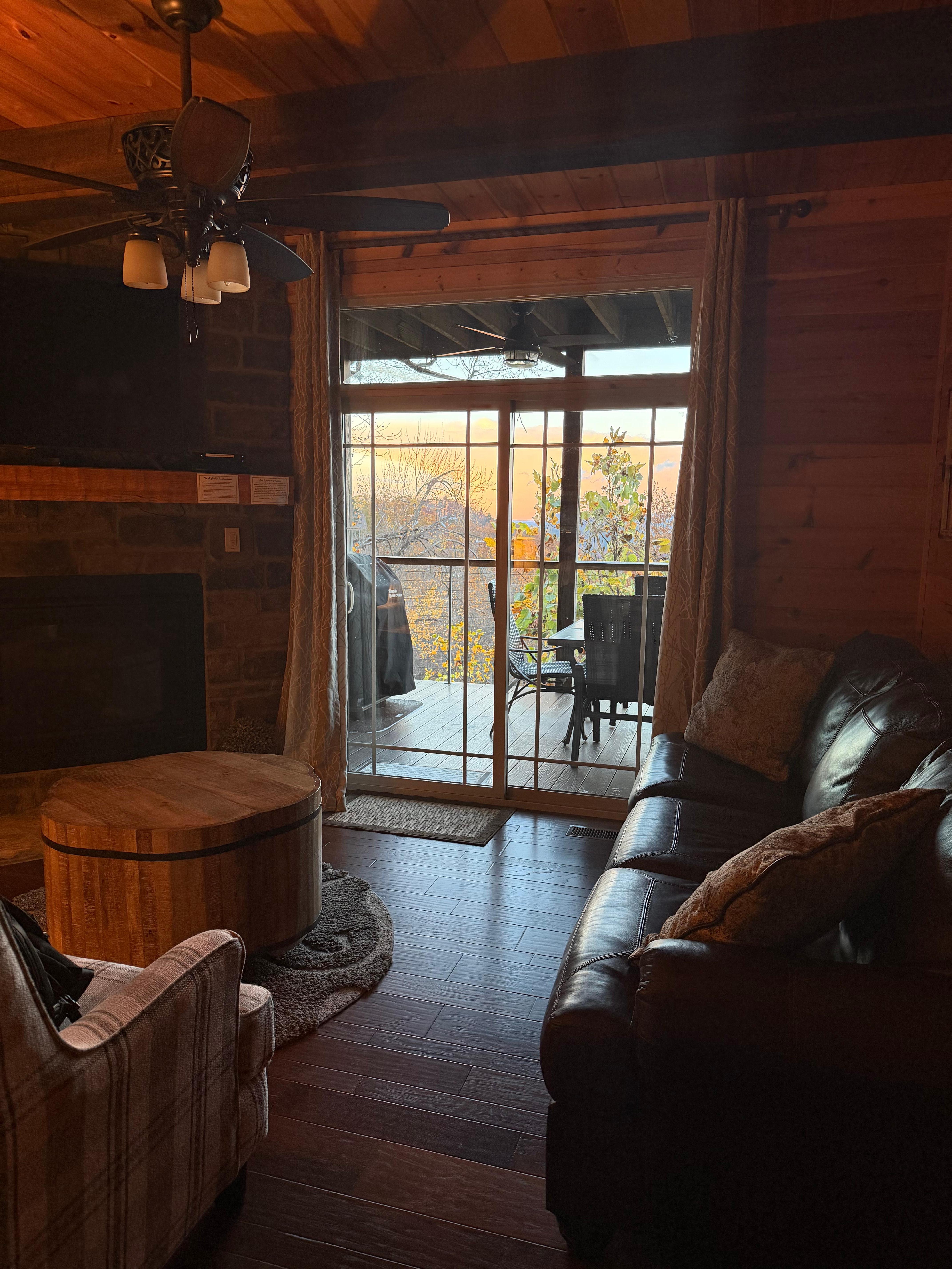 Kun tulet mökkiin, kielen ja uran seinät, upeat puupalkit ja silmiinpistävä kivi takka tarjoavat keskipisteen päärakennuksen viihdyttävä alue. Hickory-puulattiat ja kaunis sisustus koko matkustamossa asettavat sävyn rentouttavasta perääntymisestäsi. Olohuoneessa keskitytään kaasu takka, kun kalusteet ovat mukavia ja mahtuu puolueen jopa 6.