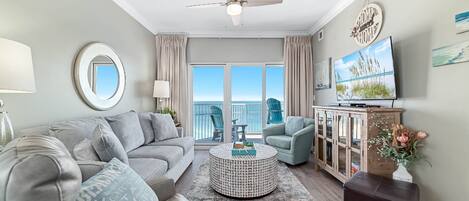 Too small for 8 people even though it can sleep that many. Needs updated. The kids room with the bunk bed is in the front by the door. The shade provides no shade and it is very bright from the light outside in the common walk way. Also, the unit is accross from the elevators so you can hear everyone outside that window and can be loud late at night. The patio was nice. Had many items in the kitchen. The fridge was not very cold. We had to put frozen bottle of water to keep the fridge cold. The location is wonderful. The splash pad is a great area for younger kids. The pool is small. The lounge chairs all need to be replaced. Overall good location. Had a wonderful time. There could be improvements made to justify the cost of the unit.