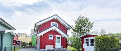 The lovingly landscaped small garden with its high-quality garden furniture invites you to enjoy breakfast outdoors or sunbathe. There is another terrace in front of the house and you can also relax on the balcony.