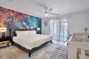 6. King bed, closet, desk space, walk in closet, smart TV