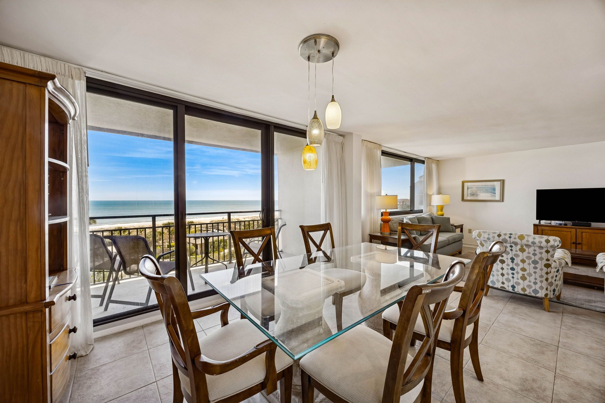 Immediately upon entering this gorgeous space, you will absolutely be blown away! Guests will appreciate the open layout, superb furnishings, and the stunning ocean vista. The primary living space and bedrooms comfortably invite you to kick back and relax, with high-speed internet and streaming services provided in each room. Stroll out onto the oceanfront balcony to take in the fresh sea breeze and watch the ships, dolphins and whales on the horizon. This condominium is located within a private complex which provides its own designated board-walk to access the beach and over-sized swimming pool. It also has a private club room for special gatherings and parties.