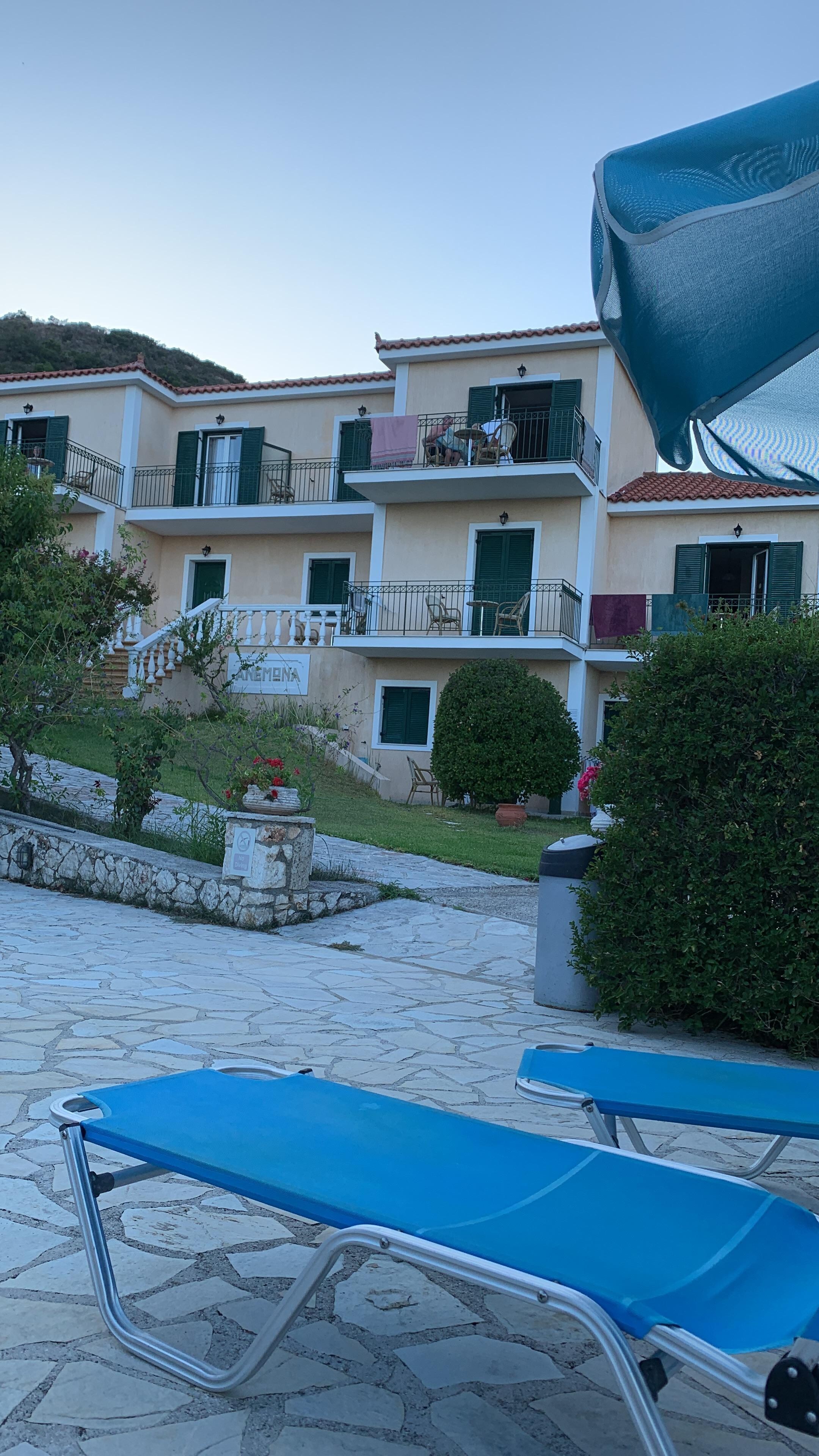 Just got back from a lovely week staying at Anemona apartments. The apartments are basic and clean with comfortable beds and outdoor pool area and sunbeds is lovely. There are great views of the mountains from the pool and it is a short 1/2 a mile walk into the beautiful village of Katelios which is directly on the beach. We stayed for one week and got fresh towels and the maid thoroughly gave the room a clean. Katelios is beautiful and quiet and there are a number of restaurants to chose to eat at. We didn’t have one bad meal. The beach is lovely and sandy and you can walk for miles out into the shallow clear sea. There is a little pool bar opposite apartments but we didn’t hear any noise whatsoever. The bakery is a short walk away and they do the most delicious pastries and they have a seating area where you can enjoy a coffee. We would definitely come back and we highly recommend Anemona to people who like peace, relaxation, walks, nature and good food.