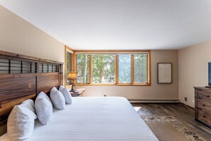 Makuuhuoneessa on king-size-vuode, taulutelevisio ja luonnonkauniit nÀkymÀt. Kylpyhuoneessa on kaksoisallas ja ovi erottaa suihku- / amme-yhdistelmÀn ja wc-alueen yksityisyyden lisÀÀmiseksi. Vierashuoneessa on queen-size-vuode ja taulutelevisio.
