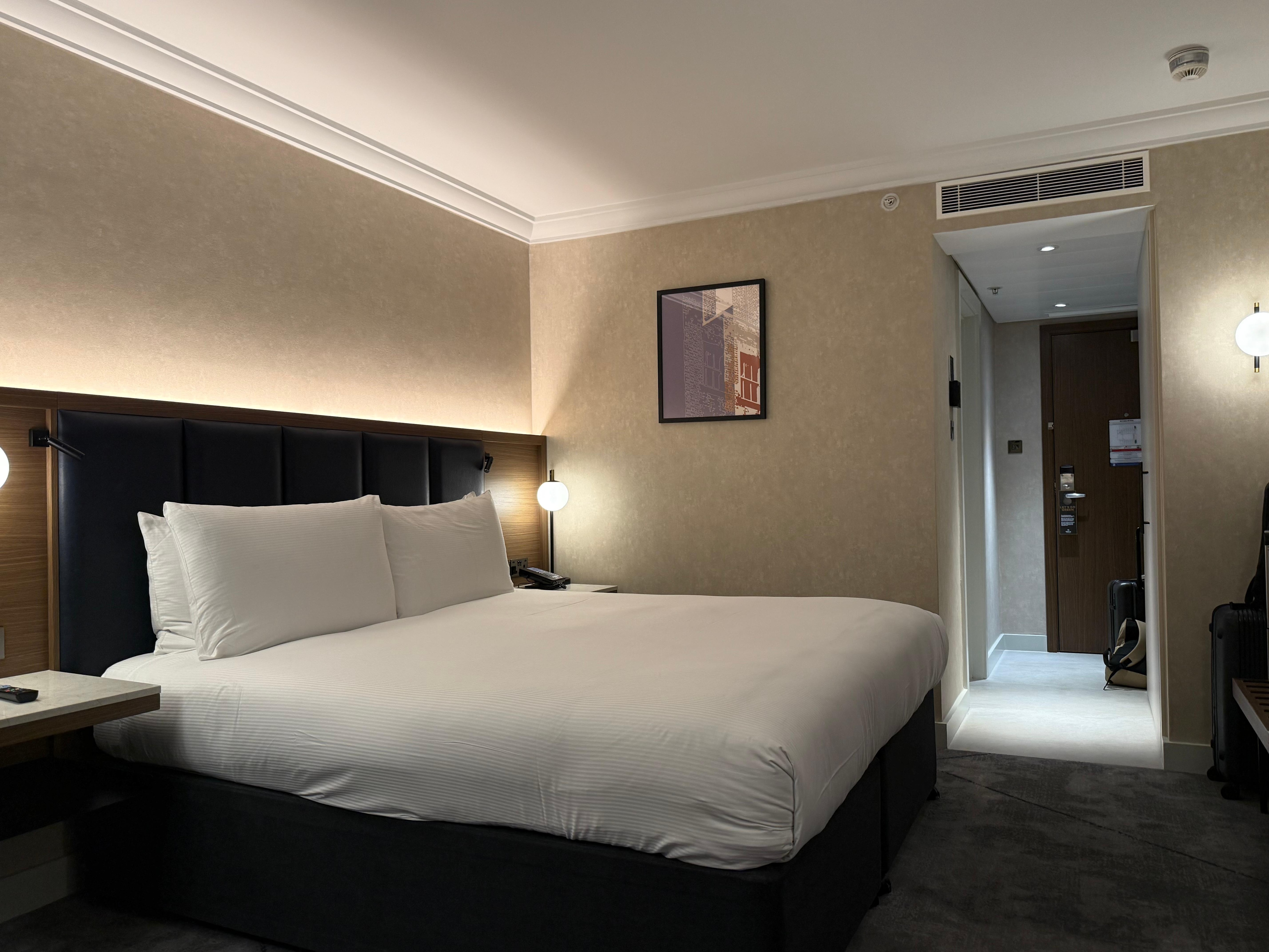 Yövyimme kahden lapsen kanssa, joten huoneen koko kahdella parisängyllä ok. Nukuimme kuitenkin huonosti koska jos vierustoveri sängyssä kääntyi siihen oli vaikeaa olla heräämättä. Patja on yhtenäinen patja.