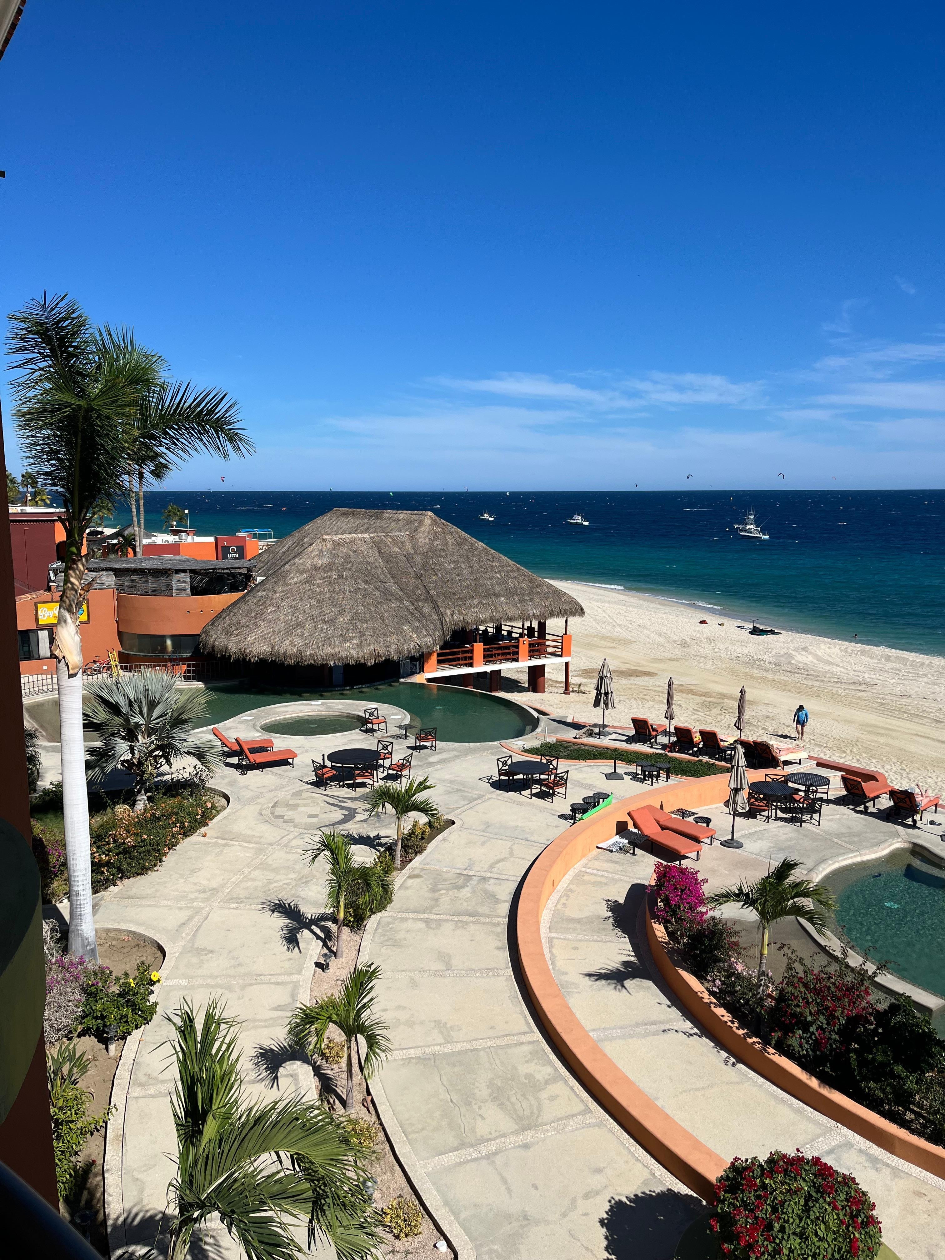 The Villa De Cortez complex offers a private beachfront infinity-edge pool with a swim-up bar, a separate hot tub, and a small children's pool. The new restaurant, located between the Villa De Cortez and Palmas De Cortez resorts, serves excellent food and drinks with unbeatable views.