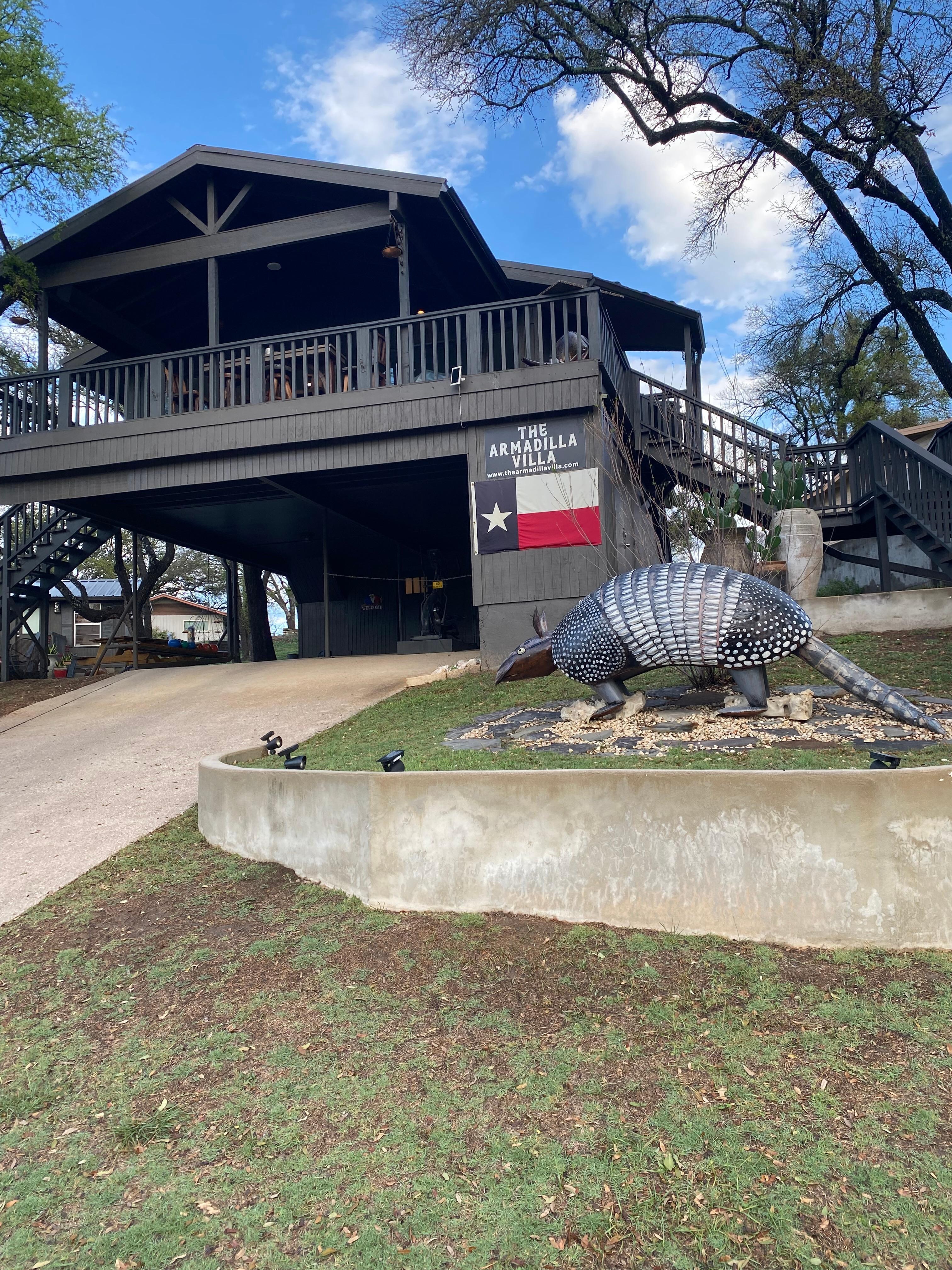 The Armadilla Villa is a fully renovated house perched majestically on the cliffs of lake Marble Falls. Two blocks away from local breweries and the famous Blue Bonnet Cafe! Our charming villa boasts the perfect blend of modern comfort and rustic charm, promising an unforgettable getaway for you and your loved ones.
