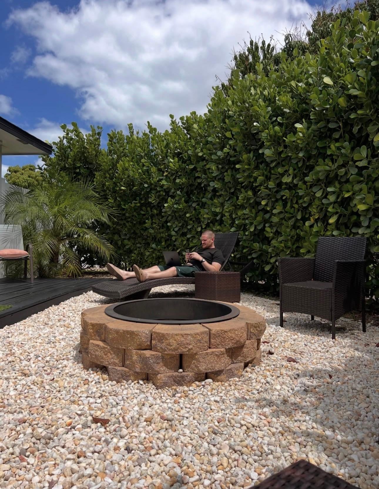 Sit beneath the gorgeous, fruitful mango tree, enjoy grilling on the back patio, let your pup explore the small, fenced-in section, or gather around the fire pit to cap off the evening under the stars. Our guests also love cozying up in our super comfy egg chair to relax and indulge in a good book or glass of wine.