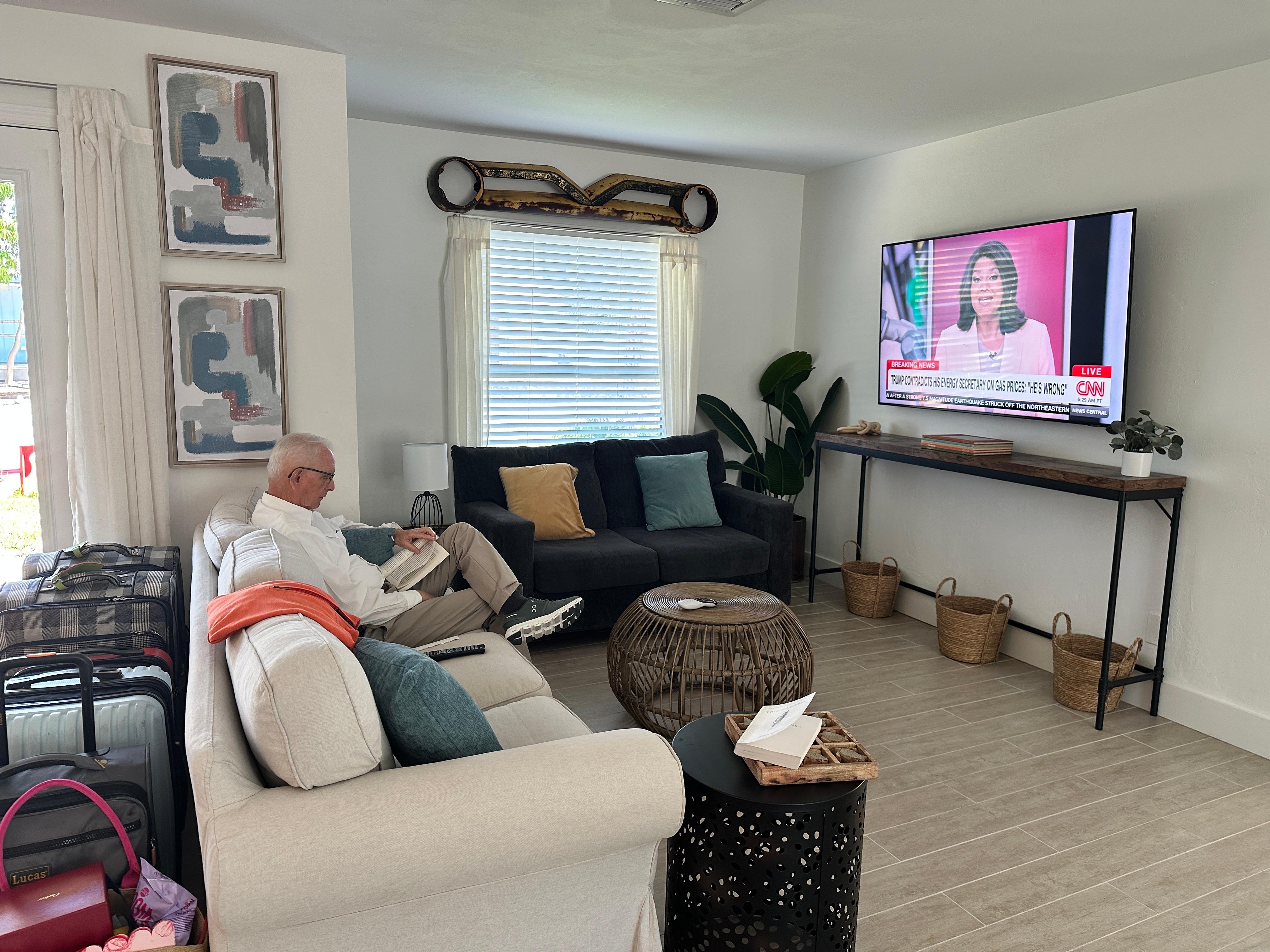 ◻️ Primary Bedroom: King-size adjustable bed, sleeps firm, on-suite bath. New flatscreen TV.