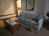 Cute little efficiency, perfect for a short stay with a pet. Very close to the beach. Parking right at the door. Clean but carpet is very stained, furniture is worn and a few things could use some maintenance. Overall what you would expect for the price though. Be aware that this is a basement apartment and you can hear everything from the room above. Every time they run the water or walk across the room, ect. Got woke up very early in the morning. But I wanted up to see the sunrise anyway. The kitchen had all the dishes and cookware we needed, even a dog bowl. Had coffee pot, toaster, blender, microwave, stove, oven. Some ice in the freezer might have been nice, but otherwise everything we needed was there. Unfortunately, there was NO grill. We brought food specifically to cook on the grill and were disappointed. I tried contacting someone but only got automated responses (and then a reminder by text not to have any loud parties and a request to state our purpose for being there) We still had a great weekend with our dog. A lot of dogs were on this public beach! Would recommend for a cheap, pet friendly getaway, but you get what you pay for.