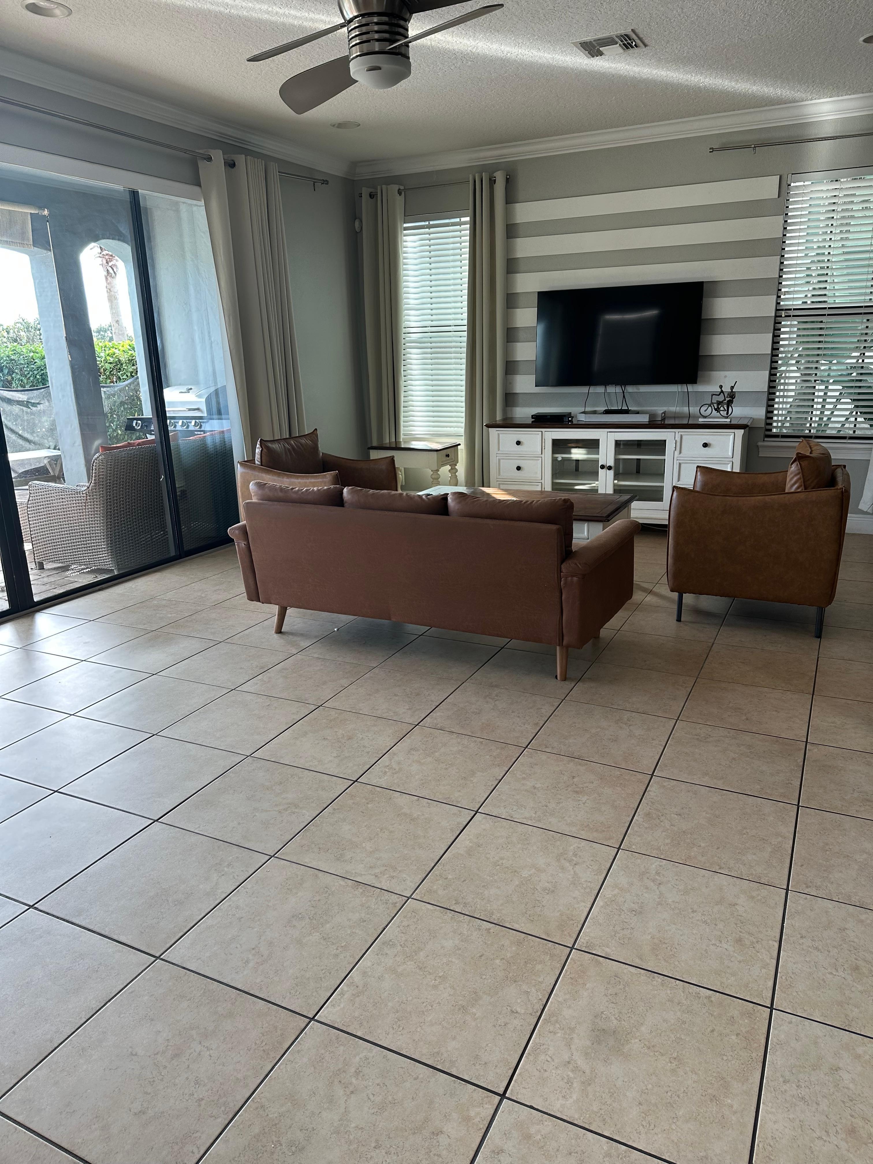 The words new and fancy should be taken out of the description. It was anything but new and anything but fancy. Here are some notes I made during our trip. 2 days without heat, they finally sent someone out that partially fixed it to make it livable.Not luxury at all, very tacky finishes, and decor.All Doors squeak, were dirty and had chipping paint.Mold in the showerBack door doesn’t lock, front door locks, but there’s a visible gap to see outside.Didn’t have a code to get in until after check in time.Mattress sinkhole in master bedroom, like sleeping on the side of a hill.No soap in bathrooms to wash handsNo towel rings to hang towels or toilet paper in powder bath.No extra trash bagsFurniture not as picturedSeating in living room for 5 people when it sleeps 12No lamps, terrible lighting throughout the entire house, you have to get out of bed using the flashlight on your phone to turn off the light and get back to the bed.Very dated, cheap finishes, very worn and tired, standard builder grade home with mismatched updating.Morning sun, so very little sun on the pool area.Broken windows Pool safety gate non-existent I looked on Zillow and it appears that the current owner bought the home in 2017. It was built in 2014. The home showed beautifully when they purchased it but changes were solely focused on kids spaces, not at all what it was then.The home across the street is exceptionally decorated and up kept comparatively, rent that one, not this one!