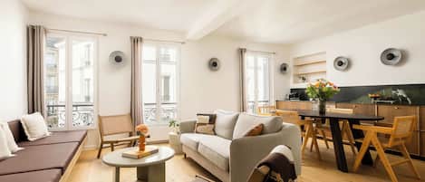 Gorgeous furniture, fully equipped kitchen, smart TV, and a premium wireless speaker are just a few of the amenities you’ll find inside this one bedroom apartment. Ideally located in Paris, you’ll find a lot to love outside as well. When you’re ready to relax, you’ll be happy to discover every Blueground bedroom comes with superior quality mattresses, fully stocked linens, and cozy towels. We handle everything so you can simply show up and start living.