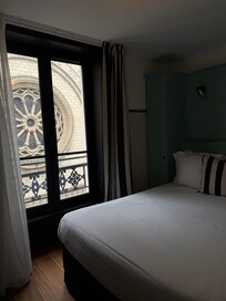 This hotel is perfect! Love the style and had a great view of nearby buildings. Within walking distance of so many cute eateries and around the corner was an amazing boulangerie/patesserie. Every staff member was friendly and helpful. We will be booking here for our next Paris stay.
