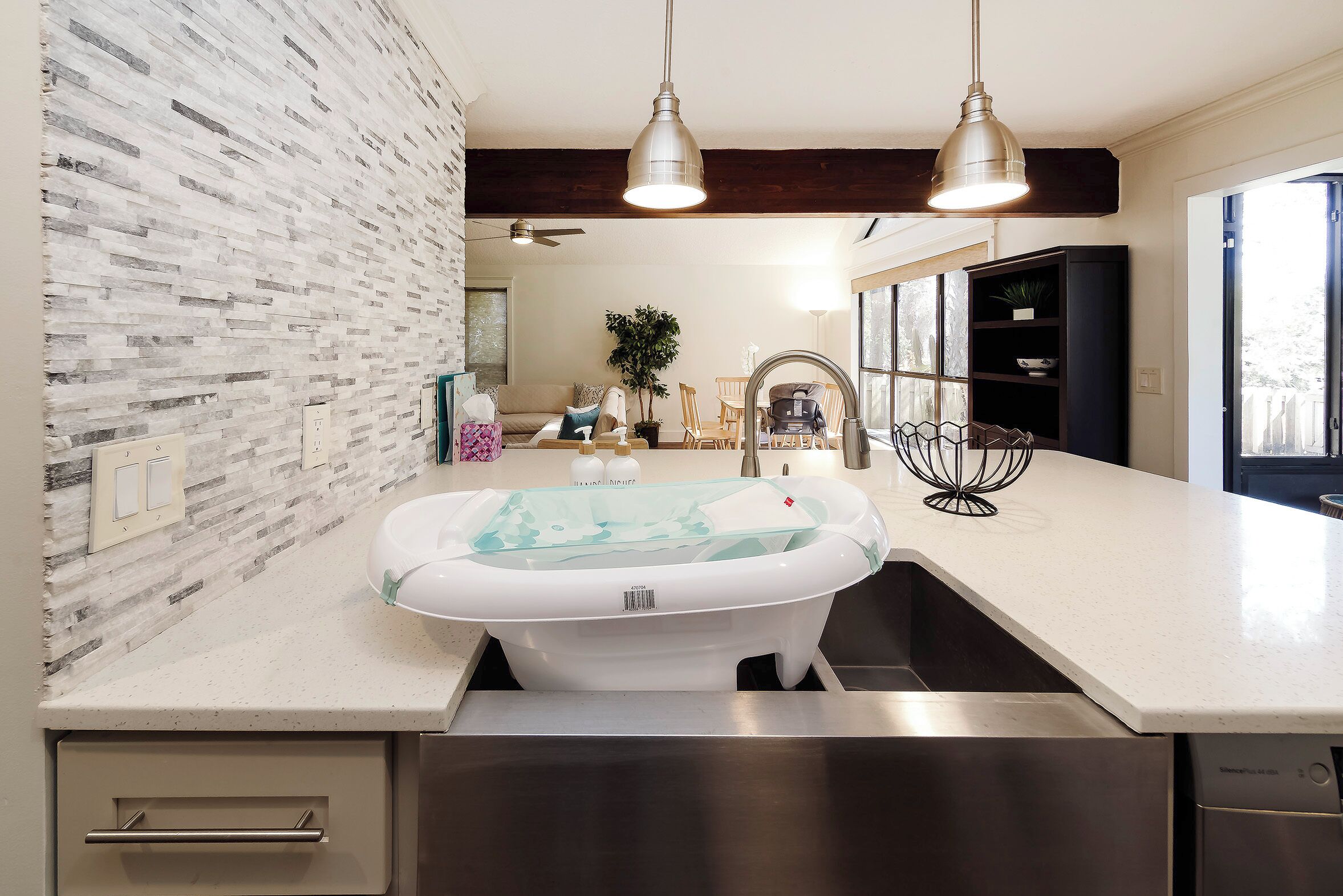 The home features a spacious open layout with multiple living areas, allowing guests to relax, gather, and unwind comfortably. The fully equipped kitchen includes modern appliances and ample space for cooking and dining at home. High speed Wi Fi, smart TVs, and an in home washer and dryer make the home especially well suited for longer stays.