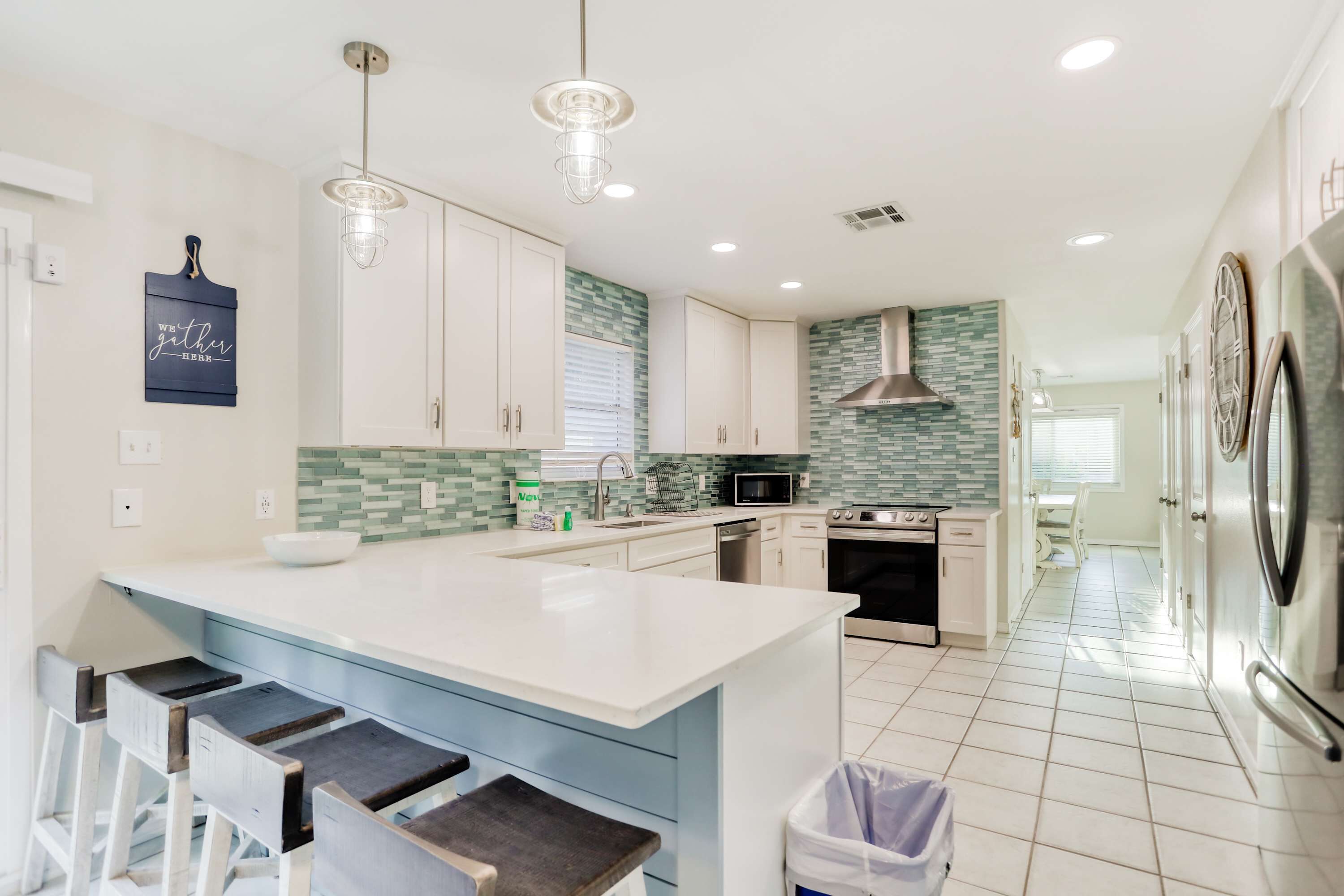 Tulet rakastamaan tätä paikkaa. Tässä uudessa talossa on moderni pohjaratkaisu, jossa on 3 makuuhuonetta ja 3 kylpyhuonetta sekä kerrossänky. On avoin konsepti keittiö, ruokailutila ja olohuone. Mestari on alakerrassa ja siinä on king-vuode, ylellinen kylpyhuone ja suuri vaatehuone. Yläkerrassa on 2 makuuhuonetta, joissa on queen-size-vuode ja kerrossänky, jossa on 4 erillistä vuodetta. Koko kiinteistössä on korkeat katot ja korkealaatuiset viimeistelyt ja kalusteet. Aseta kauppa valtavalle eteisleirille ja rentoudu ystävien tai perheen kanssa. Ilmainen wifi. KAIKKI on aivan uusi tässä talossa. Voit vapaasti valita upouusi katuoikeudellisen ostoskorin käytön aikana.