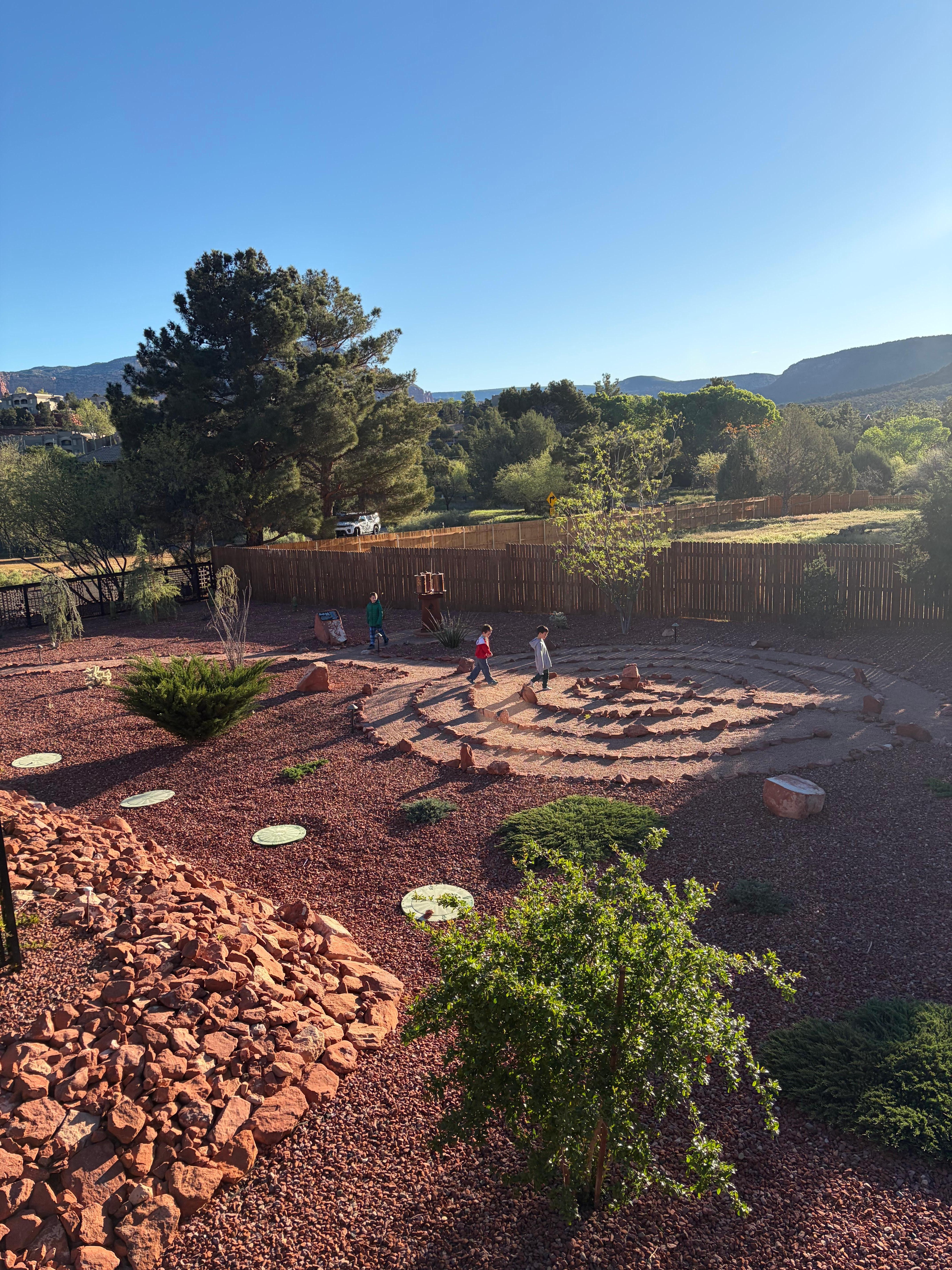 Labyrinth with Genuine Prayer Wheels for a peaceful walking meditation
