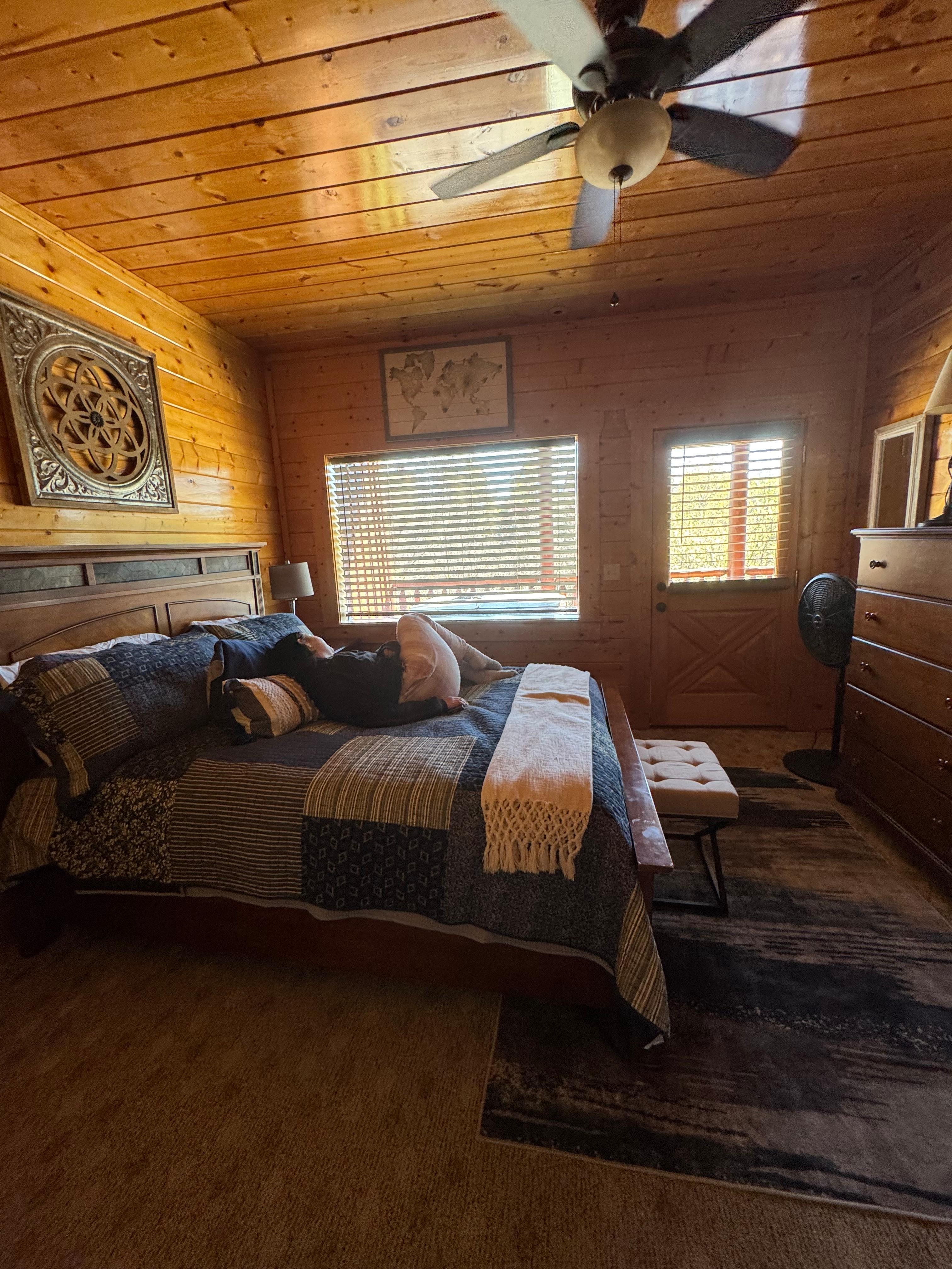 We loved this cabin! Unfortunately, we arrived late and left early! Would have loved to have had more time to enjoy it! Beds were comfortable and had fans in the bedrooms!! Would definitely stay here again!