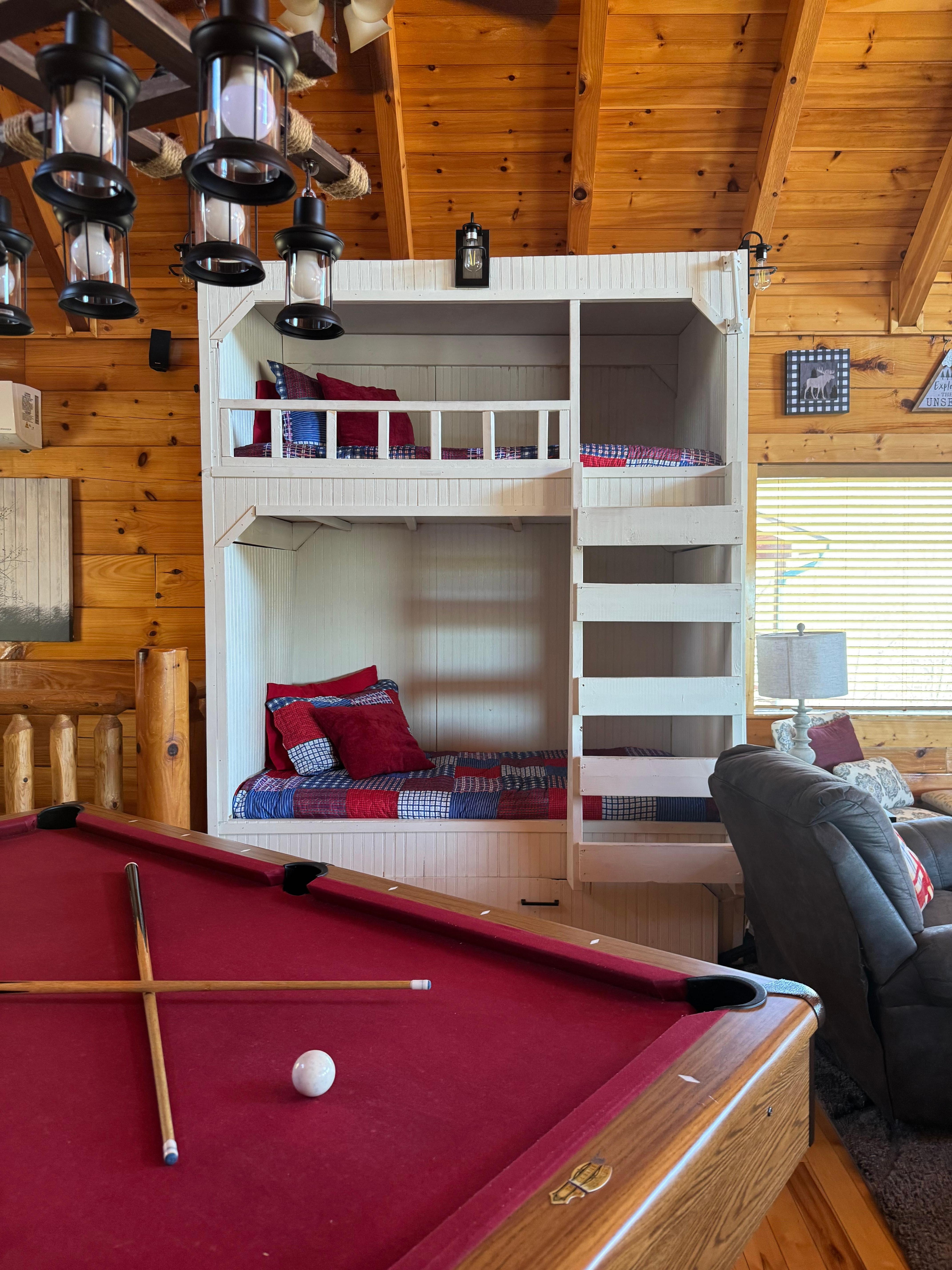 This is a great cabin nice clean and inviting. Rooms spacious, love playing arcade video games. Brought back so many memories. Amazing experience. Will be back!!!