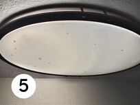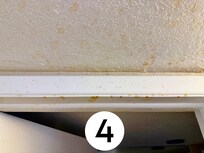#4 and #5: You can see dozens of stains from something that apparently exploded in the kitchen on the chandelier, bathroom door, and ceiling.