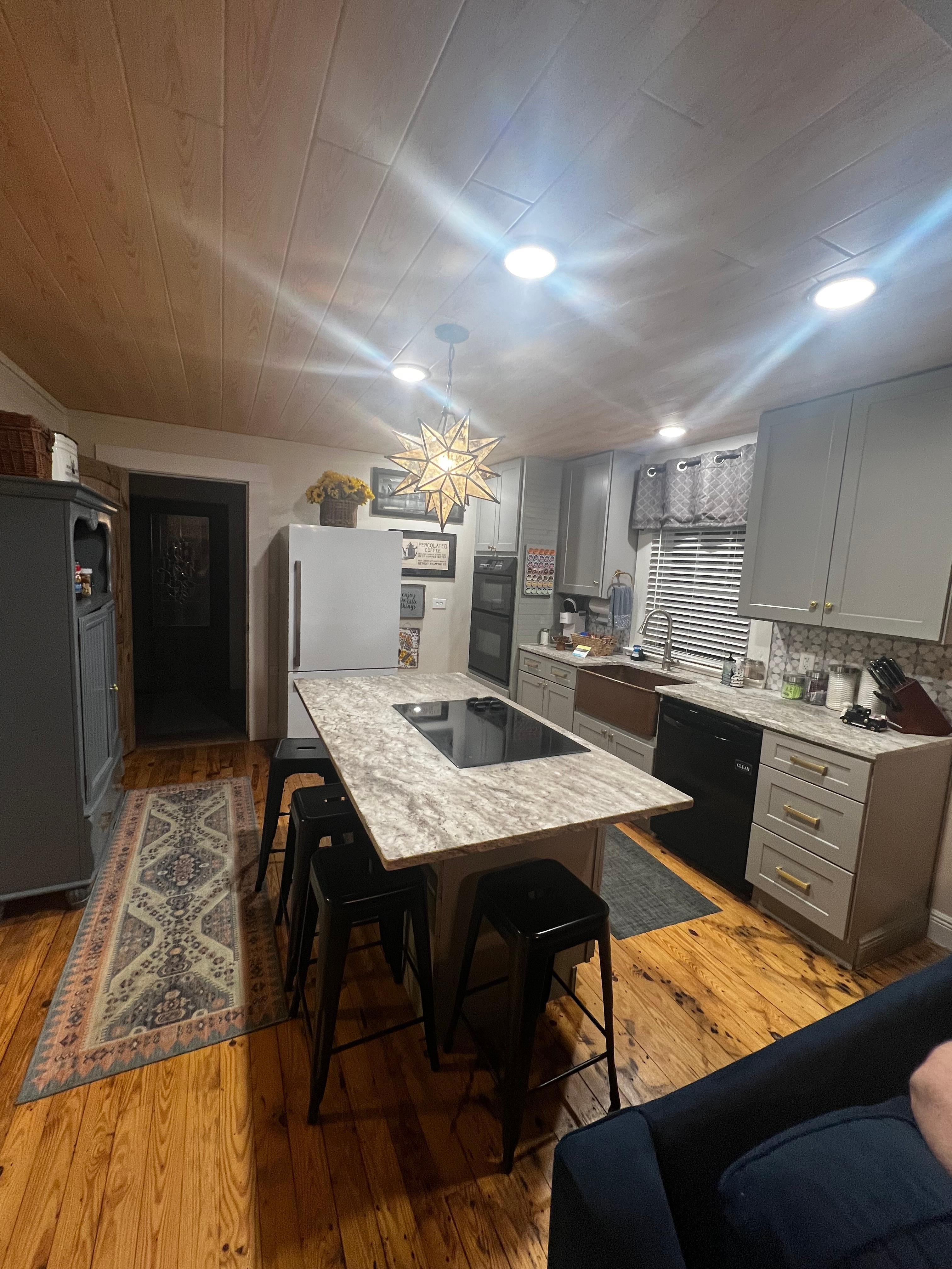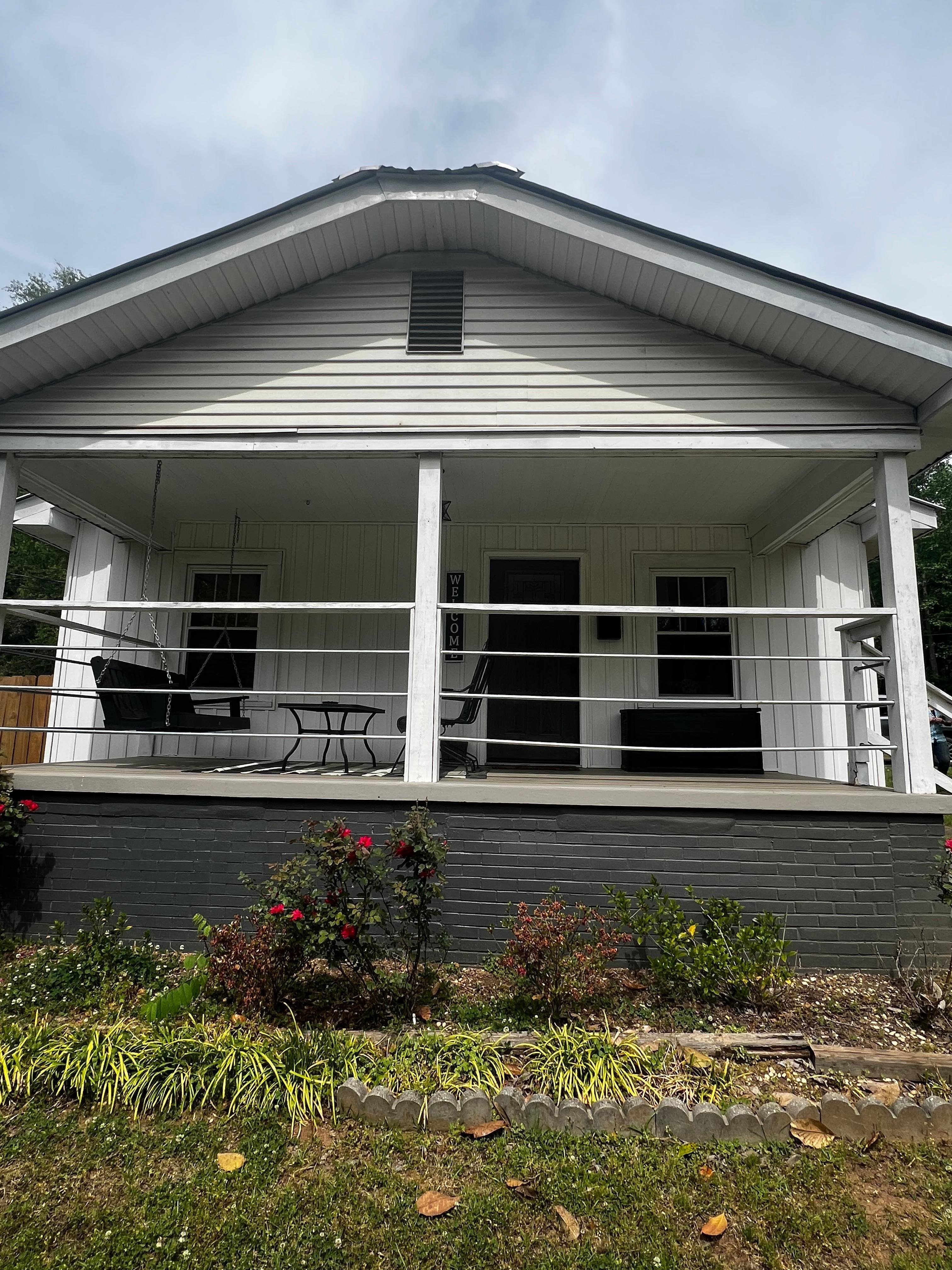 The Cottage at Steele Magnolia is a charming, newly renovated home just 3 miles of of I-59, five minutes from Alabama International Dragway & fifteen minutes from Lake Neely Henry, Noccalulla Falls, Downtown Gadsden & Horsepens 40. The cottage features a fabulous, fully stocked custom kitchen, bright & airy, with leathered dolomite counters & copper farm sink, smoothe electric cooktop in the island, dishwasher, full fridge, built-in microwave & convection oven, built-in trash/recycle bins, K-cup or grounds single cup coffee maker with coffees (traditional pot brewer in cabinet,) sweeteners & creamers & a variety of small appliances & utensils to prepare meals of any size. Dining at the island eating bar for four. The comfy living room has plenty of seating with couch, loveseat and roomy swivel chair, game/puzzle sized coffee table, DVD player, basket full of blankets, games, dedicated workspace & 58" Roku HD tv. There are 2 bedrooms- thoughtfully appointed. One bedroom (Master - 12' x 12') has a king bed, armoire, basket & drawer clothing storage, blackout drapes, ceiling fan & bath adjoins. The 2nd bedroom (12' x 13') has a king bed & twin bunk beds designed for adult comfort. All beds have quality new memory foam mattresses, quality linens, accessible power strips with USB chargers & bedside reading lamps. The laundry has washer & dryer, basic detergents, drying rack, folding counter, iron & board, broom closet & laundry bins. The full bath has a tub/shower combination with tile walls, furnished bath products, plenty of towels, first aid cabinet, marble floor & vanity with quartz counter & good cosmetic lighting. Lighted makeup mirror furnished. Outside spaces include a front porch with porch swing & courting rocker seating. Also , our guest favorite, 11' x 26' back screened porch with comfortable furniture in the living/seating area, dining table & chairs for 6, ceiling fan, vaulted ceiling & an HD tv. The spacious back yard with fire pit has six wrought iron motion chairs for relaxing & stargazing - comfortable & easy to get into & out of for "those of a certain age." Firewood is furnished. There is a 6' privacy fenced "dog yard" to the side of the home with screened door access off the rear porch - we make every effort to keep your pets safe. The rear yard is large & can be used for on-lead exercise. We ask that pets be kept off furniture as it is all new, but we furnish couch covers for cuddling with fur babies. For larger groups, sister properties, The Holiday Rambler @ Steele Magnolia (sleeps 3) or The Guesthouse @ Steele Magnolia (sleeps 4) are available for joint booking. The Rambler is 130' to the rear of the cottage on the back corner of the lot. It has privacy fencing for the comfort of both units. The Guesthouse is 60' behind The Cottage and yet feels very private. The host lives minutes away should you need anything. Dollar General Grocery store is three miles from the cottage. Wal-Mart Super Center is 6 miles. I-59/Steele exit is 3 miles. Everything has been updated to allow for modern convenience & comforts but with the character of a southern country cottage. Steele Magnolia offers all the comforts of home for travelers, event stays, extended stays, family visits or a relaxing getaway. Sleeps six & is pet friendly & handicap accessible. Paved parking on premises, including boats, trailers, moving trucks or RVs. Attractions close include Jacksonville State University, Alabama International Dragway, Horsepens 40, Chief Ladiga Trail, Cherokee Rock Village, Noccalulla Falls, Mountaintop Trade Days, several wineries, Big Wills Creek, Tigers for Tomorrow, Rock the South & Talladega Motor Speedway. There is plenty of available boat parking for fisherman with charging outlets on the front & rear porches. 45 minutes NE of Birmingham &convenient to Gadsden, Springville & many local attractions, you will enjoy the cozy feeling, considerate design touches & refreshing outdoor spaces.