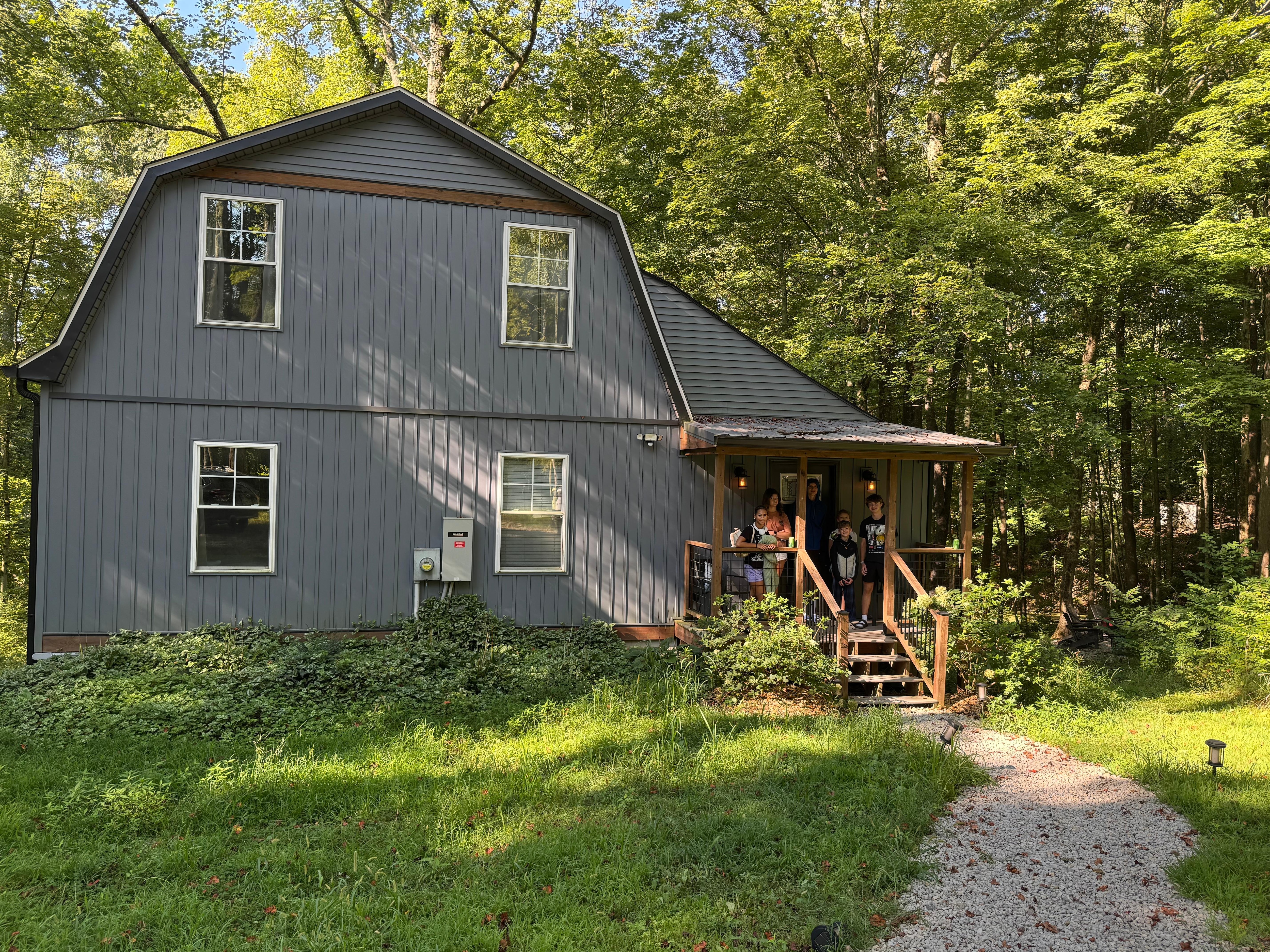 We vacationed with some friends and all of our kids. There were 8 of us in total, 4 adults and 4 kids (two 9 yr olds, two 7 year olds). There was more than enough space for our group and then some. The kids loved the game space with NBA Jam, TMNT, darts, bubble hockey, and mini golf. The adults all took a turn on the old school Nintendo and Super Nintendo. We all enjoyed making S’mores around the fire pit and creating silly stories fireside. This is also the most well equipped place I’ve stayed. There was a drip coffee maker, a Keurig, a toaster, a Ninja blender, a spice rack, paper products, foil, coffee filters, condiments, and a bazillion dishes to make it easy on our larger party. The bar area downstairs was awesome, too. The *only* “downside” were the subtle Buckeye references….Go Blue! ;) We did have a small issue with the deadbolt not working the day after we arrived and a small outage of hot water, but with both situations Chris and Heather were amazing. They were very quick to respond and troubleshoot and it didn’t impact our trip negatively in any way. I was grateful for their communication and they even brought us flowers to brighten our day. Totally unnecessary but it was such a thoughtful gesture. I would recommend this place to anyone. Chris and Heather went above and beyond and if we return to the Hocking Hills area, it would be a no brainer to stay here. Thank you Chris and Heather for everything!