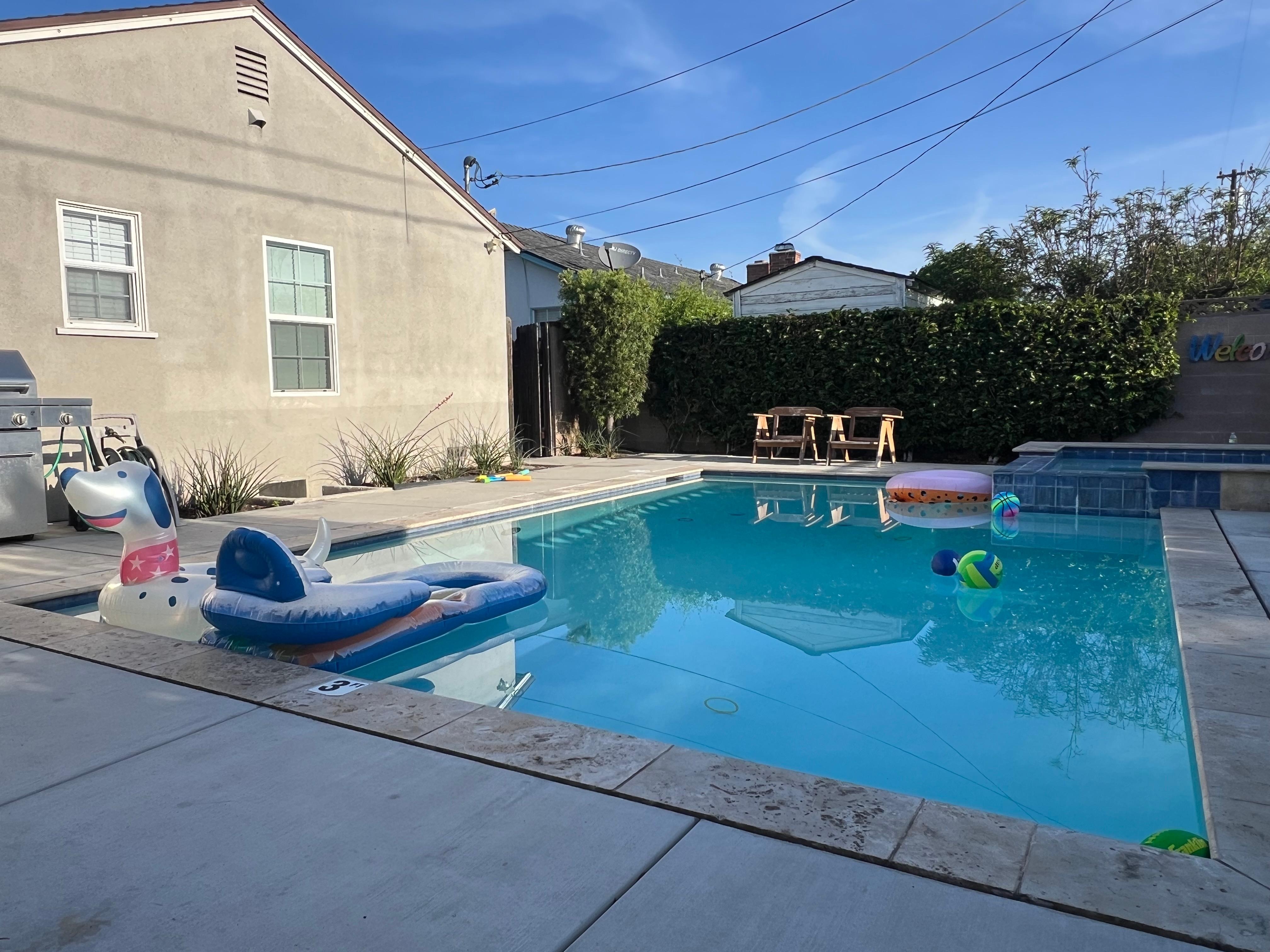 - ULKOPUOLET - Lämmitetty uima-allas ja kylpylä, uima-allaspelit, oleskelutilat ulkona, BBQ, valaistu, hauskoja pelejä perheen ja ystävien kanssa.