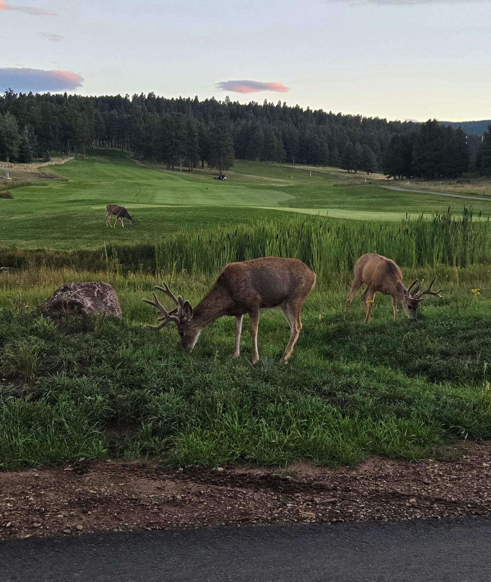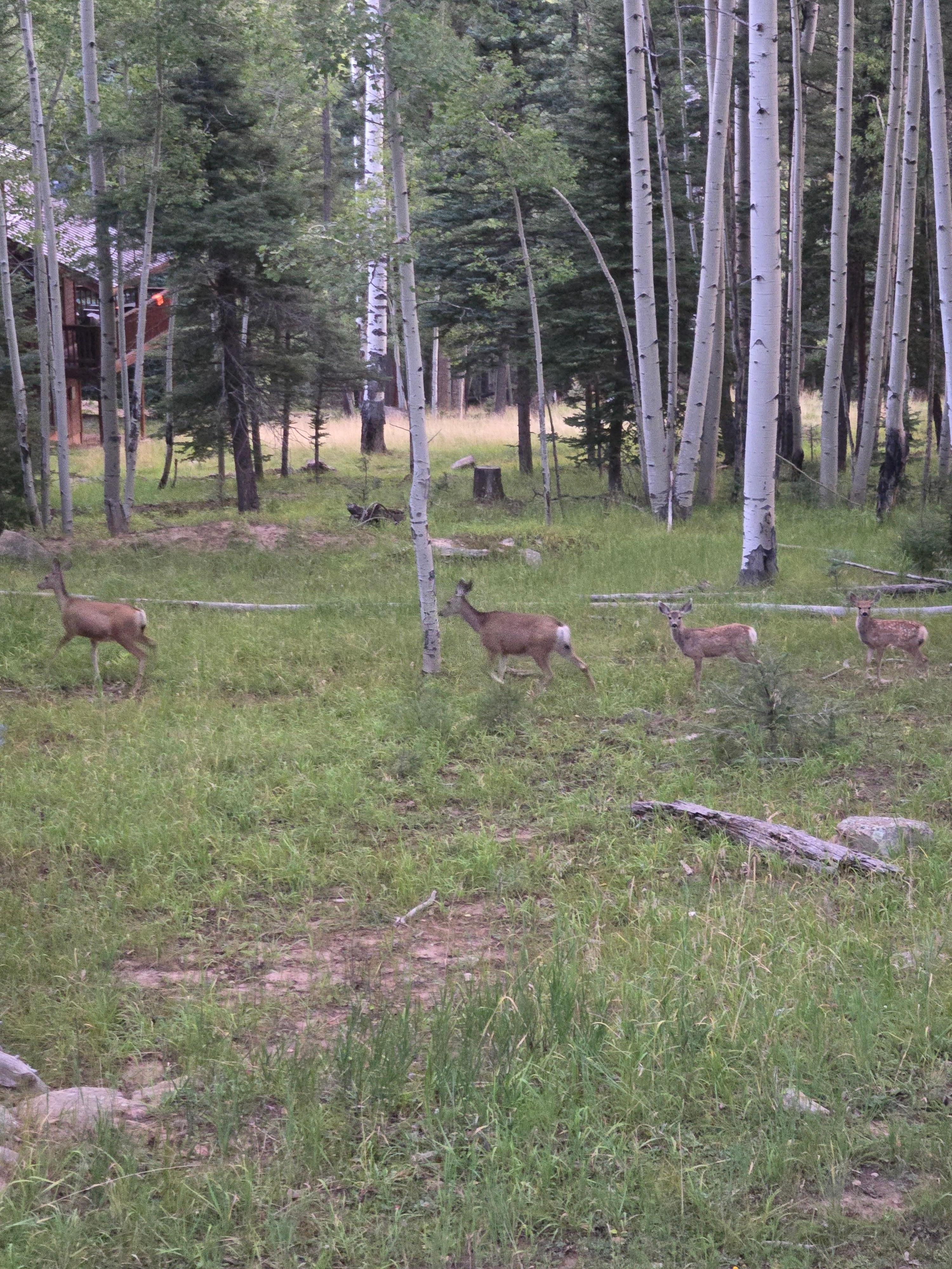 The quaint mountain home sits at 8,500 feet between Angel Fire Resort's beautiful Championship 18 hole golf course and Country Club and the Resort's trout filled Monte Verde Lake. Enjoy the fantastic and relaxing views of the mountain scenery while enjoying the commonly crossing game animals from the comfort of the 400+ square foot deck while eating on the picnic table on the deck. (Deck also has a gate to secure small children while you enjoy the fresh mountain air with the kitchen door open to allow open access from the cabin onto the porch). The cabin has full amenities to play and enjoy for all, including flat screen TV's in all bedrooms, xbox gaming console, telephone and fast internet wi-fi connectivity.