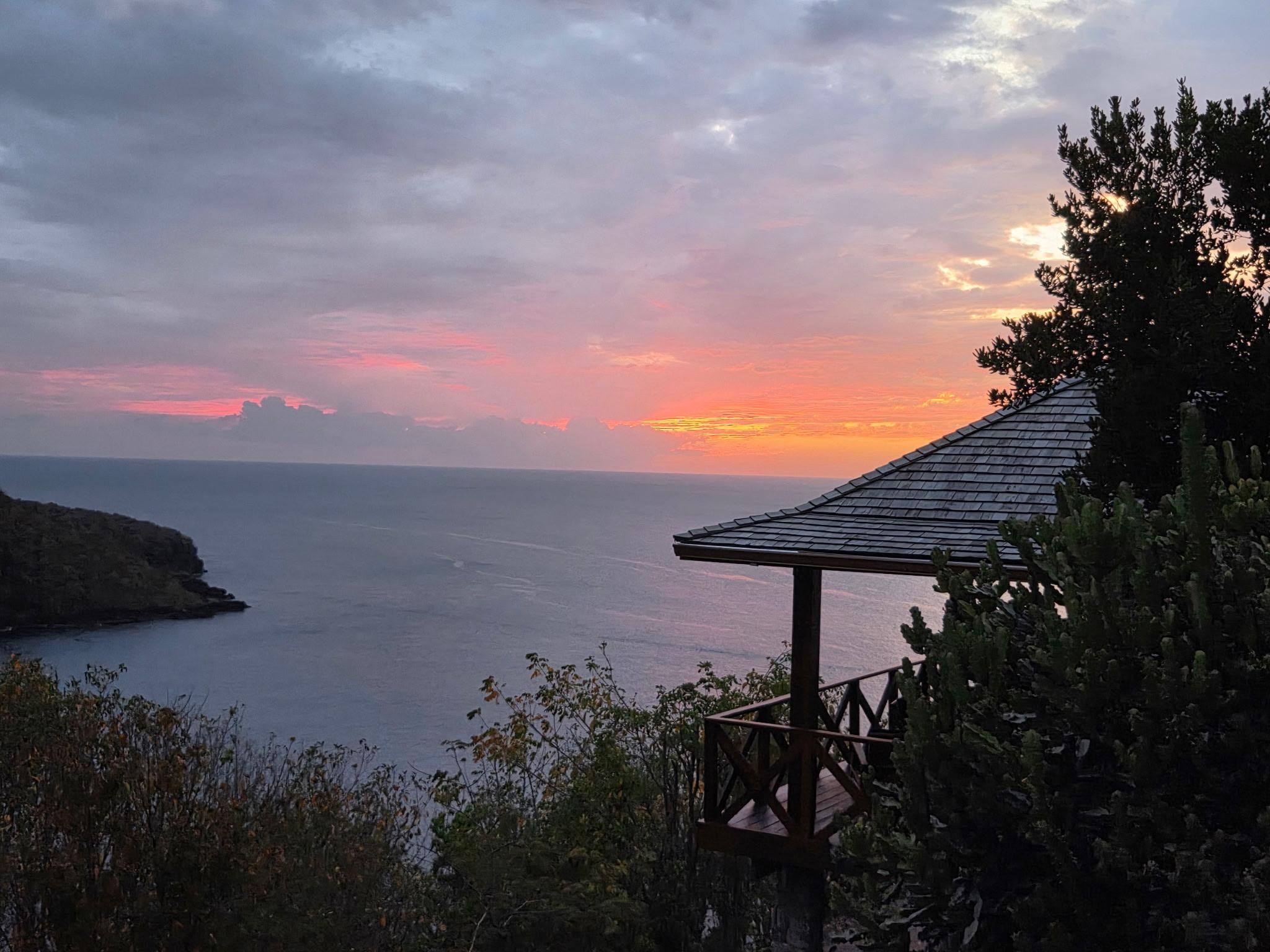 Les Chaudieres sits on a promontory above the Caribbean Sea and the Anse Galet valley and beach, with cooling breezes, panoramic views of tropical mountains and the sea. The beach is just below and you can hear the surf. Hike a trail down to enjoy this secluded shoreline with snorkeling, or you can drive around to it with equipment / picnic supplies in 2 minutes. All beaches on St. Lucia are public property, but Anse Galet has no commercial or residential development on it. It is usual to have it entirely to yourself (but on occasion, there will be the odd party / get-together; in which case, be prepared for some local music).