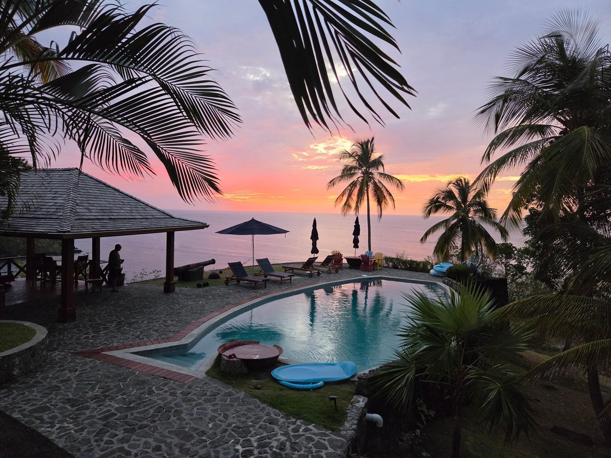 A secluded, private oceanfront villa with stunning 360 degree views of the Caribbean sea, lush valley and mountains. Unique open air architecture to allow you to truly enjoy the Caribbean breezes and extraordinary views either from the main great room or the large pool pavilion or your private en suite bedroom. Staff of 3+ - all cooking, cleaning, laundry is provided. Headland location on point above hidden beach surrounded by ocean and jungle mountains. Truly a paradise for 2-3 couples, 6 friends or a family or two.
