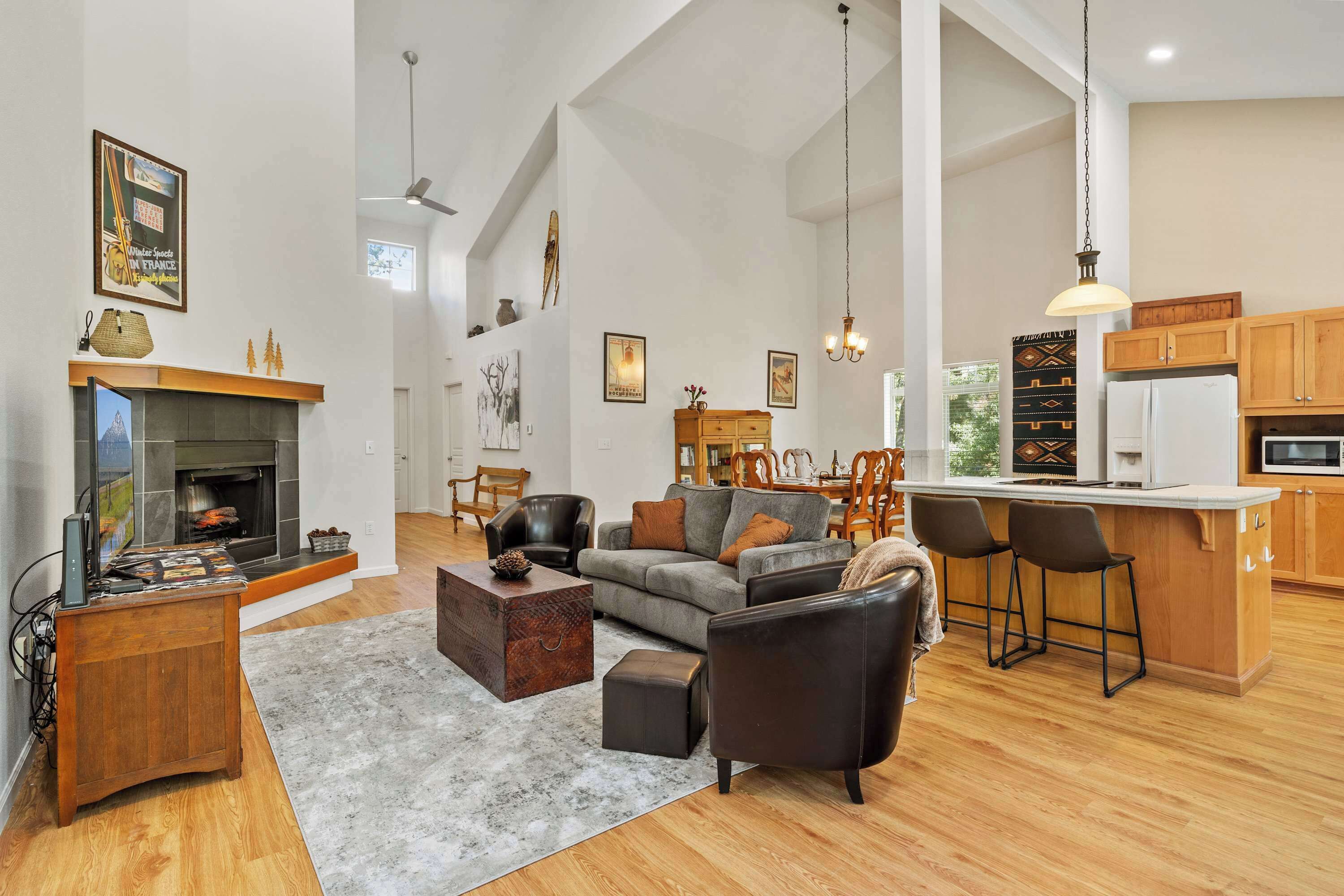 Air-conditioned home with kitchen, washer/dryer and fireplace