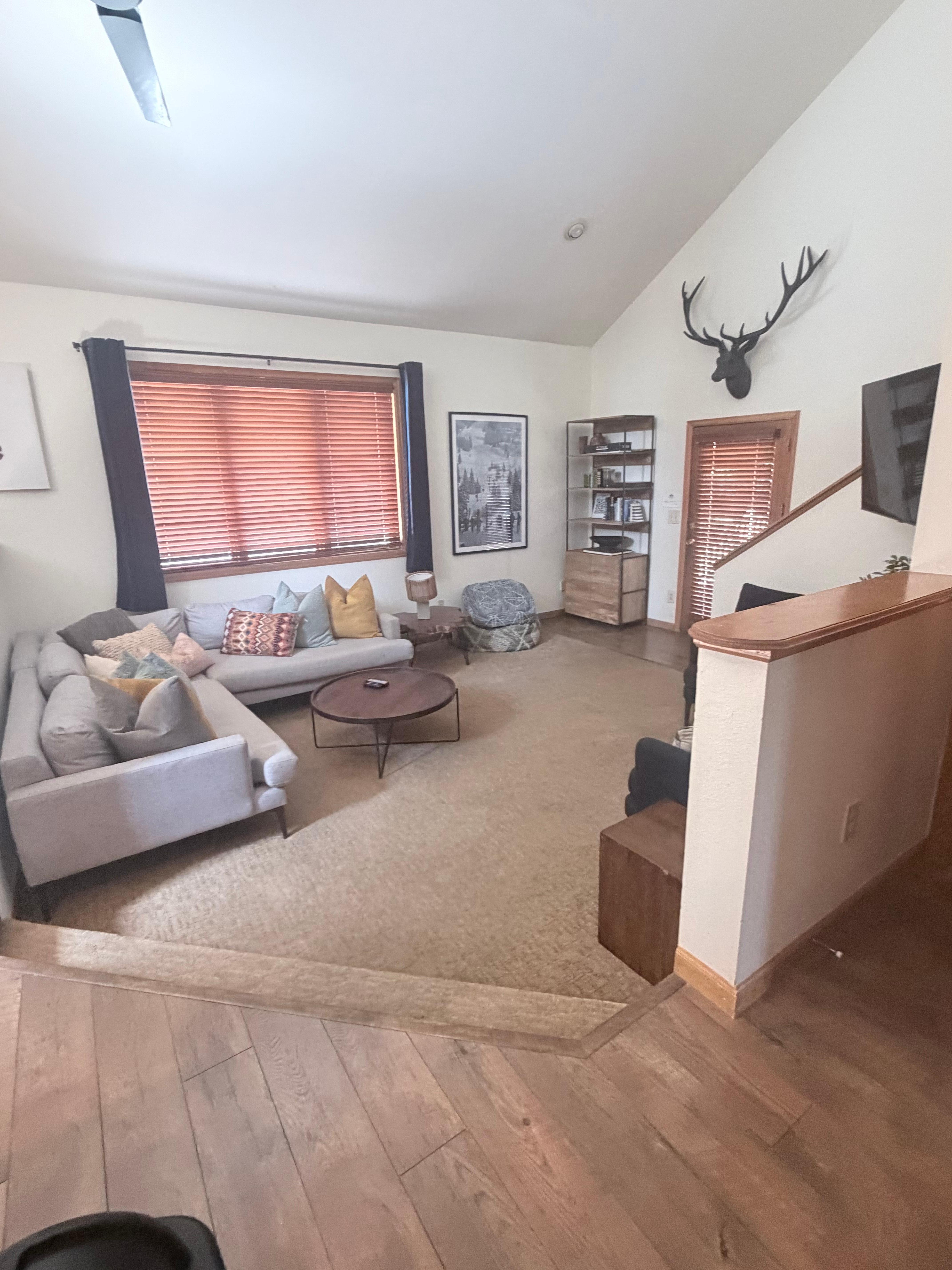 Kolmen tason vuoristohotelli kutsuu perheet tai suuret ryhmät viettämään aikaa, jossa on runsaasti kaappitilaa, astianpesukone, kylpyhuoneet, joissa on suihkut, ammeet ja kaksoisallas; pesutupa, varustettu liinavaatekaappi ja eklektinen kirja valinta. Nauti nahkasohvat, pehmustettu rocker, kauko-ohjattava kaasu takka, äänijärjestelmä ja taulu-näyttö uppoutuvalle olohuoneelle tai viihdyttele avoimessa keittiössä, jota reunustavat graniittipalkki ja tylsä nahkainen sohva.