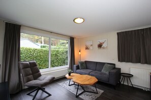 Velthorst Sauna 4 is a detached, ground floor chalet suitable for 4 persons. In the living room you will find a cosy sitting area with television and a dining area. The kitchen is equipped with a dishwasher, microwave and coffeemaker. Furthermore, there are 2 bedrooms, each with 2 single beds or a bunk bed. There is also a bathroom with a shower and toilet. In addition, you can enjoy an infrared sauna in this chalet. Outside is a spacious terrace with garden furniture. At your holiday home you can park 1 car and there is free wifi.