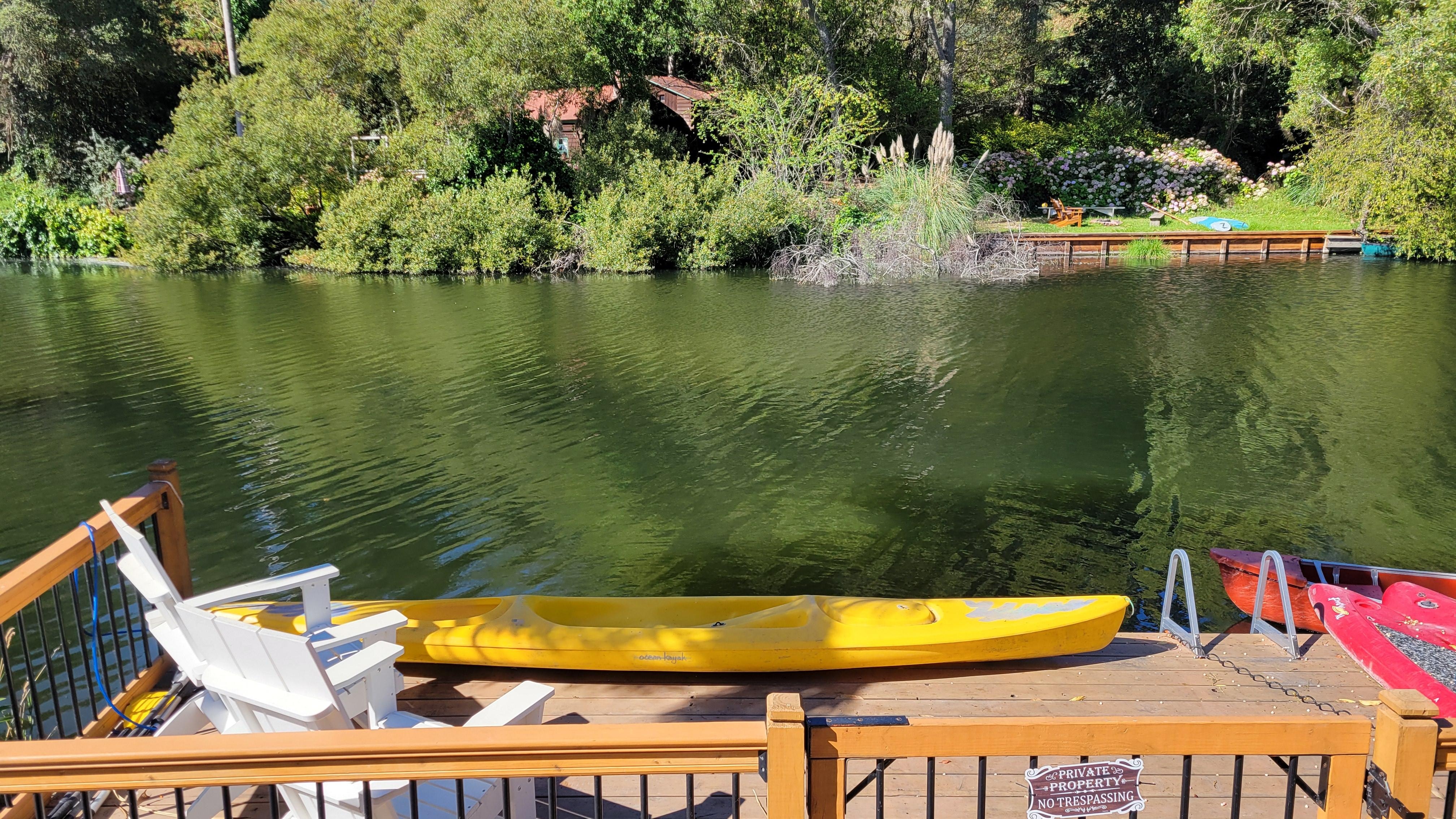 It has a personal boat dock with (2)kayaks and a Paddleboard to use at your leisure. Or you can Kick on the deck and look out onto the beautiful Soquel Creek and observe nature.
