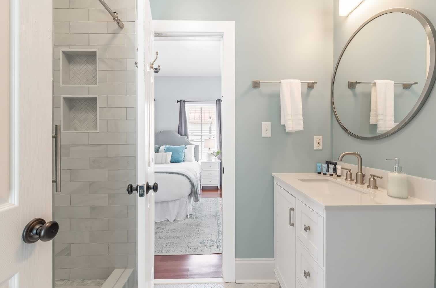 * Primary bedroom with king bed and ensuite bathroom